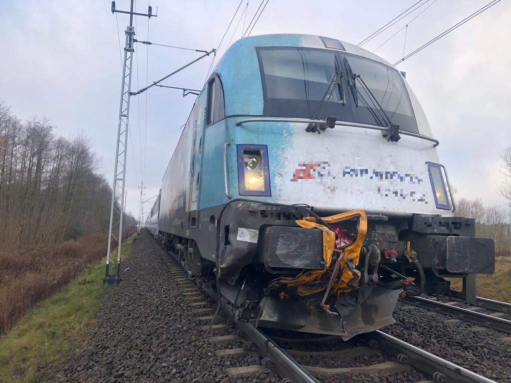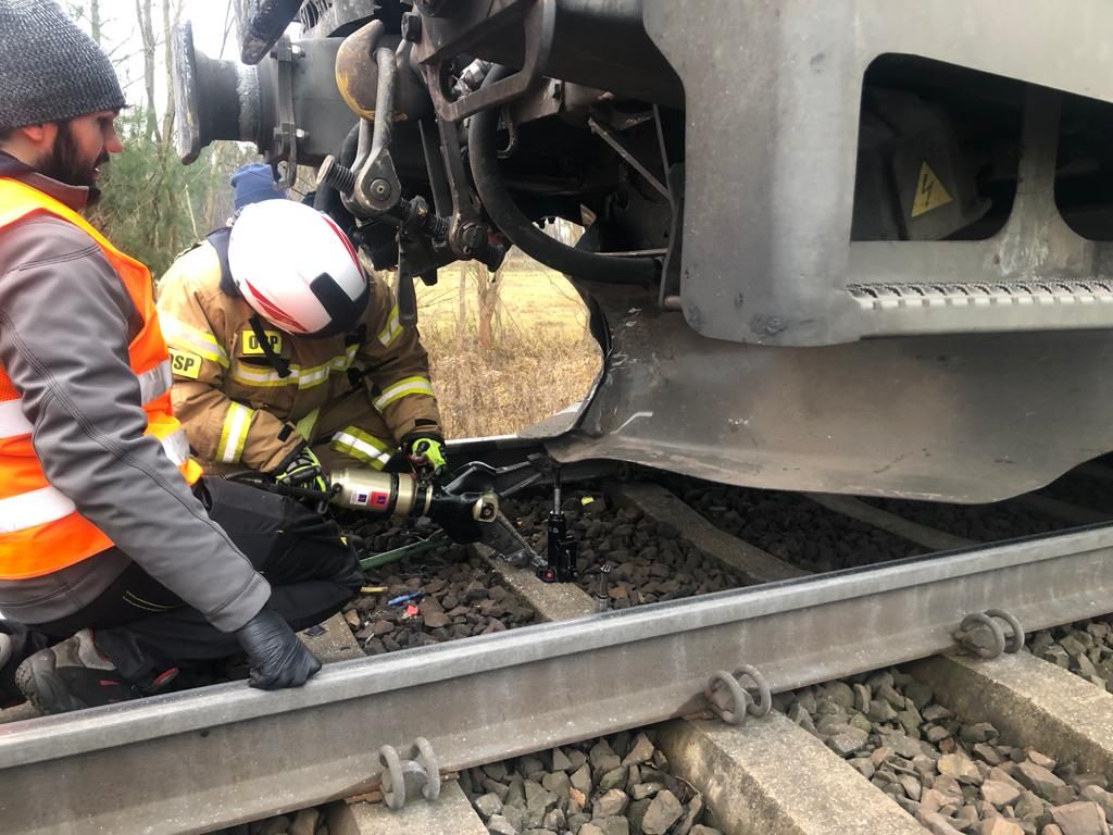 W dniu 29 listopada 2021 roku o godz. 8:45 do Stanowiska Kierowania Komendanta Powiatowego PSP w Nowym Tomyślu wpłynęło zgłoszenie o wypadku samochodu osobowego, który wjechał pod nadjeżdżający pociąg na przejeździe kolejowym w miejscowości Sątopy gm. Nowy Tomyśl. Dyżurny SKKP do działań zadysponował dwa zastępy ratownictwa technicznego i samochód rozpoznawczo-ratowniczy z JRG Nowy Tomyśl oraz jednostkę OSP Bukowiec i Sątopy. Po przybyciu pierwszych zastępów na miejsce zdarzenia zastano rozpołowiony samochód osobowy Peugeot Partner, a ciało kierowcy znajdowało poza pojazdem. Po rozpoznaniu odstąpiono od kwalifikowanej pierwszej pomocy z uwagi brak funkcji życiowych oraz na liczne obrażenia wielonarządowe. Skład pociągu osobowego Intercity relacji Berlin - Warszawa Wschodnia zatrzymał się około 350 metrów za przejazdem kolejowym. W wyniku uderzenia oraz wyrzucenia z wnętrza Peugeota licznych przedmiotów uszkodzeniu uległy trzy samochody osobowe znajdujące się na pobliskim parkingu. Przejazd kolejowy, który zazwyczaj jest strzeżony obecnie był w trakcie remontu, a do słupa sygnalizacji świetlnej przymocowano znak "STOP" oraz tablicę informującą o uszkodzonej sygnalizacji. Działania strażaków polegały na zabezpieczeniu miejsca zdarzenia, wstrzymaniu ruchu na drodze powiatowej w kierunku Sątop, sprawdzeniu stanu zdrowia i ewentualnych obrażeń wszystkich 160 pasażerów podróżujących pociągiem - żadna z osób nie wymagała pomocy medycznej. Przybyły na miejsce lekarz Zespołu Ratownictwa Medycznego stwierdził zgon kierowcy Peugeota. W dalszej kolejności wyznaczono miejsce przyjmowania autobusów komunikacji zastępczej PKP, a działania strażaków polegały na pomocy w bezpiecznym transporcie podróżnych oraz ich bagaży przez torowisko do podstawionych autokarów. Dalsze działania polegały na usunięciu z jezdni plamy płynów eksploatacyjnych przy pomocy sorbentu oraz pomocy służbom kolei w odpowiednim odgięciu i ułożeniu zbieracza lokomotywy przy użyciu narzędzi hydraulicznych.