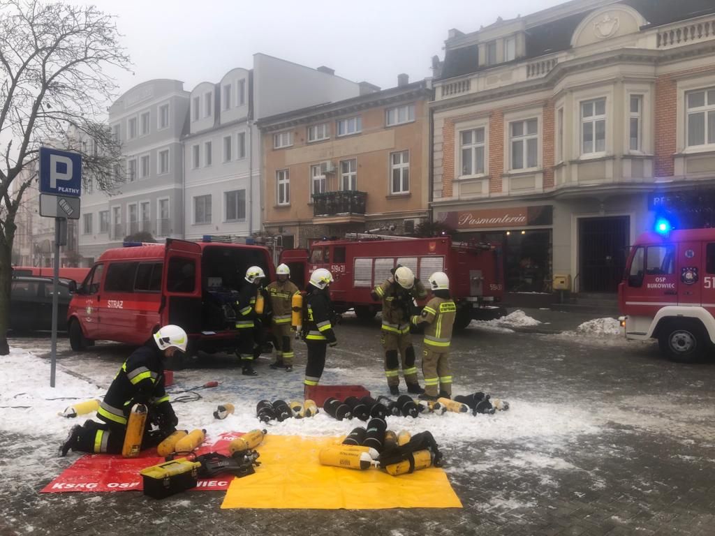 W dniu 15 lutego 2021 r. o godzinie 5:47 do Stanowiska Kierowania Komendanta Powiatowego PSP w Nowym Tomyślu wpłynęło zgłoszenie o pożarze kamienicy w Nowym Tomyślu przy ul. Mickiewicza. Po przybyciu na miejsce zdarzenia pierwszych zastępów zastano dziewczynę w otwartym oknie na drugim piętrze, która stała w kłębach dymu wydobywającego się z wnętrza mieszkania, wołała o pomoc i wymagała natychmiastowej ewakuacji. Strażacy rozstawili drabinę mechaniczną i ewakuowali dziewczynę. Równocześnie ratownicy prowadzący rozpoznanie zauważyli, że dramat również rozgrywał się na tyłach kamienicy od strony podwórka, gdzie znaleźli dwóch mężczyzn. Jeden z nich mając odciętą drogę ucieczki z uwagi na palącą się klatkę schodową postanowił wyskoczyć z okno na zadaszenie nad wejściem do kamienicy. Drugi natomiast miał mniej szczęścia i uciekając przed gęstym dymem oraz temperaturą wyskoczył z okna na ziemię. Pierwszego ewakuowano przy użyciu drabiny przystawnej, drugi mężczyzna wymagał natychmiastowej pomocy medycznej, której udzielali mu strażacy w oczekiwaniu na Zespół Ratownictwa Medycznego. Cały czas na miejsce pożaru były dysponowane kolejne siły i środki jednostek OSP z terenu gminy oraz druga drabina mechaniczna SCD-30 z Jednostki Ratowniczo - Gaśniczej z Grodziska Wlkp. w celu prowadzenia równoczesnych działań od strony ul. Mickiewicz i ul. Długiej. Z terenu działań strażacy przekazali służbie zdrowia cztery osoby oraz ewakuowali trzy osobową rodzinę i trzy psy z mieszkania na pierwszym piętrze, osoby te nie wymagały hospitalizacji. Niestety podczas prowadzonych działań na miejsce akcji dotarła smutna wiadomość o śmierci mężczyzny, który wyskoczył z okna kamienicy. Dalsze działania strażaków polegały na rozstawieniu ogrzewanego namiotu pneumatycznego, w którym mogły schronić się ewakuowane osoby oraz było to miejsce odpoczynku dla strażaków pracujących rotacyjnie przy pożarze. Ponadto stworzono punkt napełniania butli powietrzem wykorzystując sprzęt jednostki OSP Bukowiec, gdzie napełniono i przygotowano do dalszych działań 60 butli. Działania były utrudnione z uwagi na niską temperaturę powietrza oraz charakter zwartej zabudowy ul. Mickiewicza. Aby skutecznie zakończyć akcję gaśniczą strażacy wykonali liczne rozbiórki konstrukcji ścian, drewnianego stropu oraz konstrukcji dachu. Tego dnia w działaniach udział brało 13 zastępów oraz 58 strażaków. Na miejsce przybyła również grupa operacyjna z Komendy Wojewódzkiej PSP w Poznaniu.