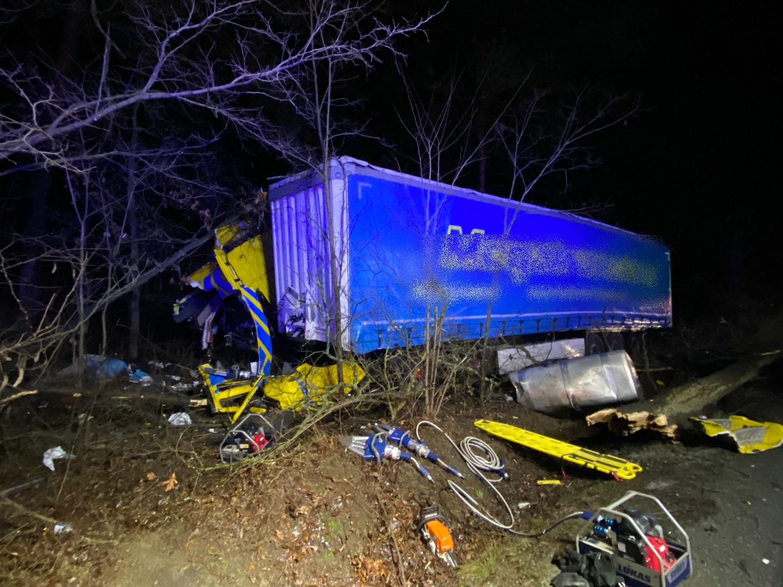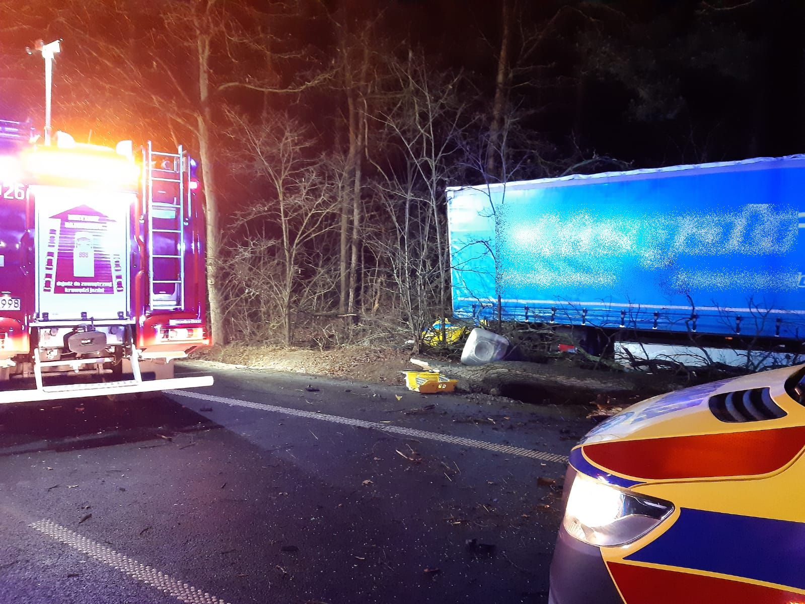 W dniu 9.01.2021 roku o godz. 17:41 do Stanowiska Kierowania Komendanta Powiatowego PSP w Nowym Tomyślu wpłynęło zgłoszenie z Centrum Powiadamiania Ratunkowego o wypadku samochodu ciężarowego na 109km drogi krajowej 92, brak informacji o osobach poszkodowanych. Do zdarzenia zadysponowane zostały dwa zastępy z nowotomyskiej JRG oraz OSP Miedzichowo i OSP Bolewice. Po przybyciu pierwszych zastępów straży pożarnej na miejsce zdarzenia zastano samochód ciężarowy z naczepą znajdujący się częściowo na poboczu drogi oraz w lesie. Pojazd uderzył w drzewo, które złamało się i blokowało ruch na jezdni. Nieprzytomny kierowca znajdował się w szoferce bez parametrów życiowych. Samochód przewoził wełnę izolacyjną.