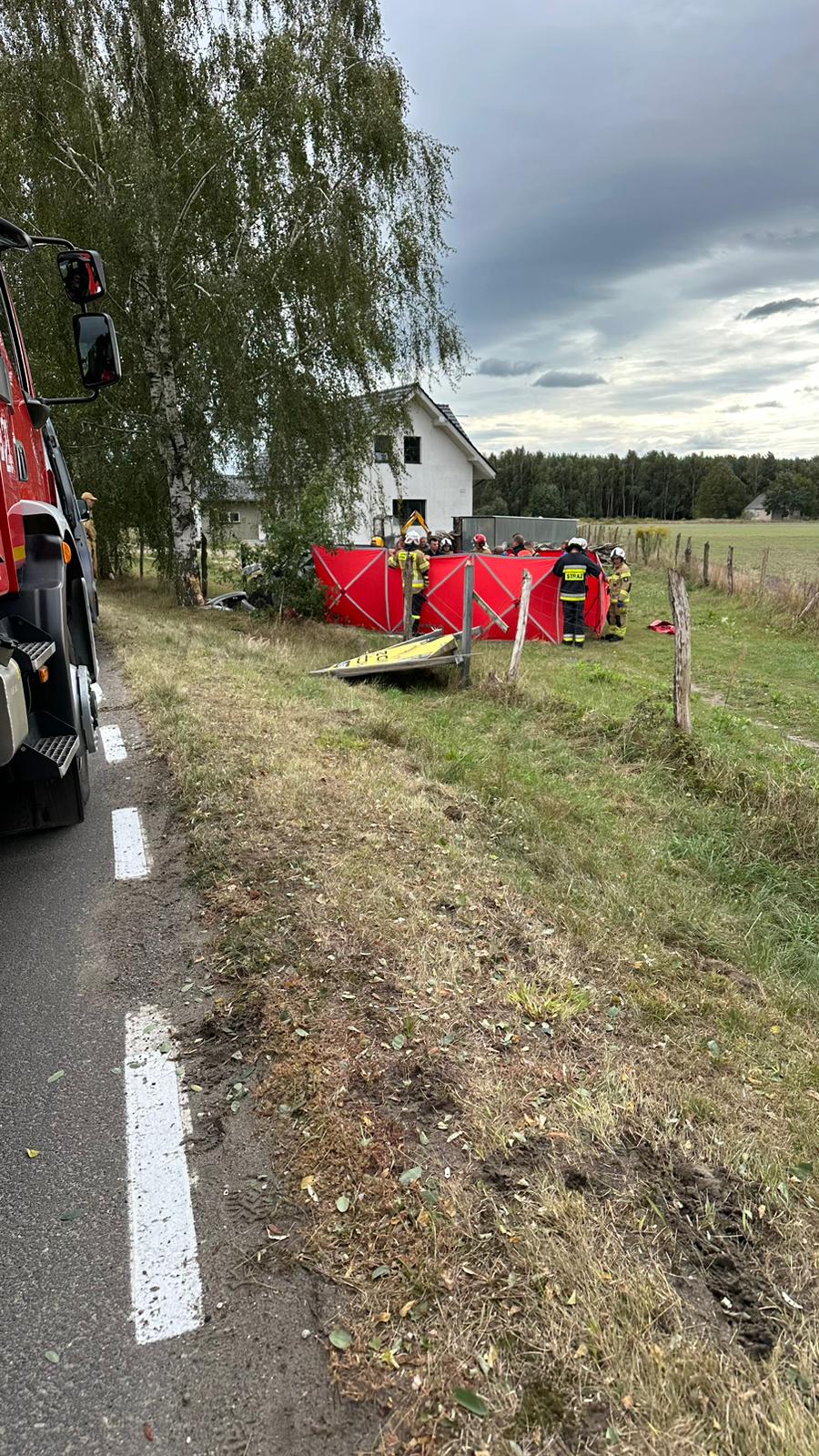 Po przybyciu zastępów straży pożarnej na miejsce zdarzenia zastano samochód osobowy stojący na posesji, po uderzeniu w drzewo. Kobieta kierująca autem znajdowała się poza pojazdem. Policjanci którzy przybyli na miejsce zdarzenia prowadzili resuscytacje krążeniowo-oddechową.