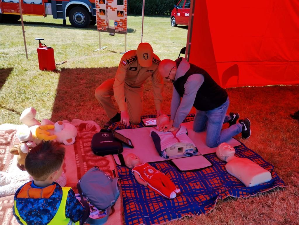 Państwowa Straż Pożarna prezentowała na swoim stoisku symulator zagrożeń pożarowych domu jednorodzinnego wraz z modułem woda-las, przy którym można było porozmawiać o zagrożeniach w mieszkaniu, w domu, w lesie, nad wodą czy też na drodze. Ponadto każdy mógł wejść do zadymionego namiotu i zmierzyć się z silnym dymem, a jednocześnie przypomnieć sobie podstawowe zasady ewakuacji, a także poczuć się jak prawdziwy strażak podczas prowadzenia działań gaśniczych. Ważnym elementem stoiska była nauka pierwszej pomocy, która jest bardzo istotna, szczególnie w okresie letnim, gdy dochodzi do zdarzeń podczas prac polowych. Udzielenie pierwszej pomocy do czasu przybycia służb ratunkowych, może uratować poszkodowanej osobie życie i uniknąć kalectwa. Odwiedzający stoisko PSP mogli również zapoznać się z samochodem ratowniczo-gaśniczym, samochodem przeznaczonym do dekontaminacji oraz z samochodem specjalnym typu drabina, a także zadawać pytania na nurtujące ich tematy z zakresu ochrony przeciwpożarowej, podstawowych zasad bezpieczeństwa, czy jak zostać strażakiem.