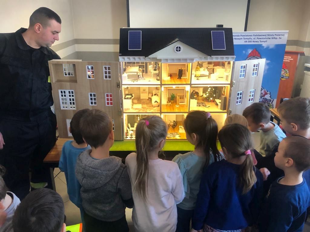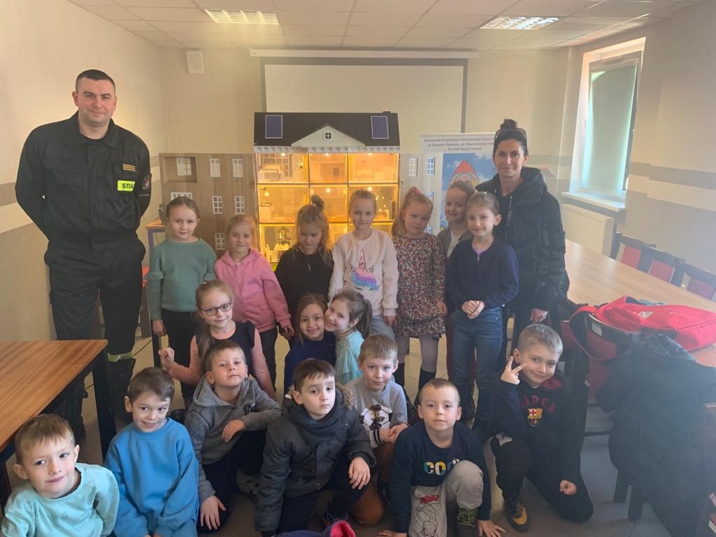 W dniu 8 marca 2022 roku o godz. 10:30 do Komendy Powiatowej Państwowej Straży Pożarnej w Nowym Tomyślu przyszła grupa Słoneczka z przedszkola nr 4 im. Bolka i Lolka w Nowym Tomyślu. Jako, że nie była to pierwsza wizyta tej grupy w budynku komendy, dlatego milusińscy byli przede wszystkim zainteresowani mobilnym symulatorem zagrożeń pożarowych tzw. domkiem.