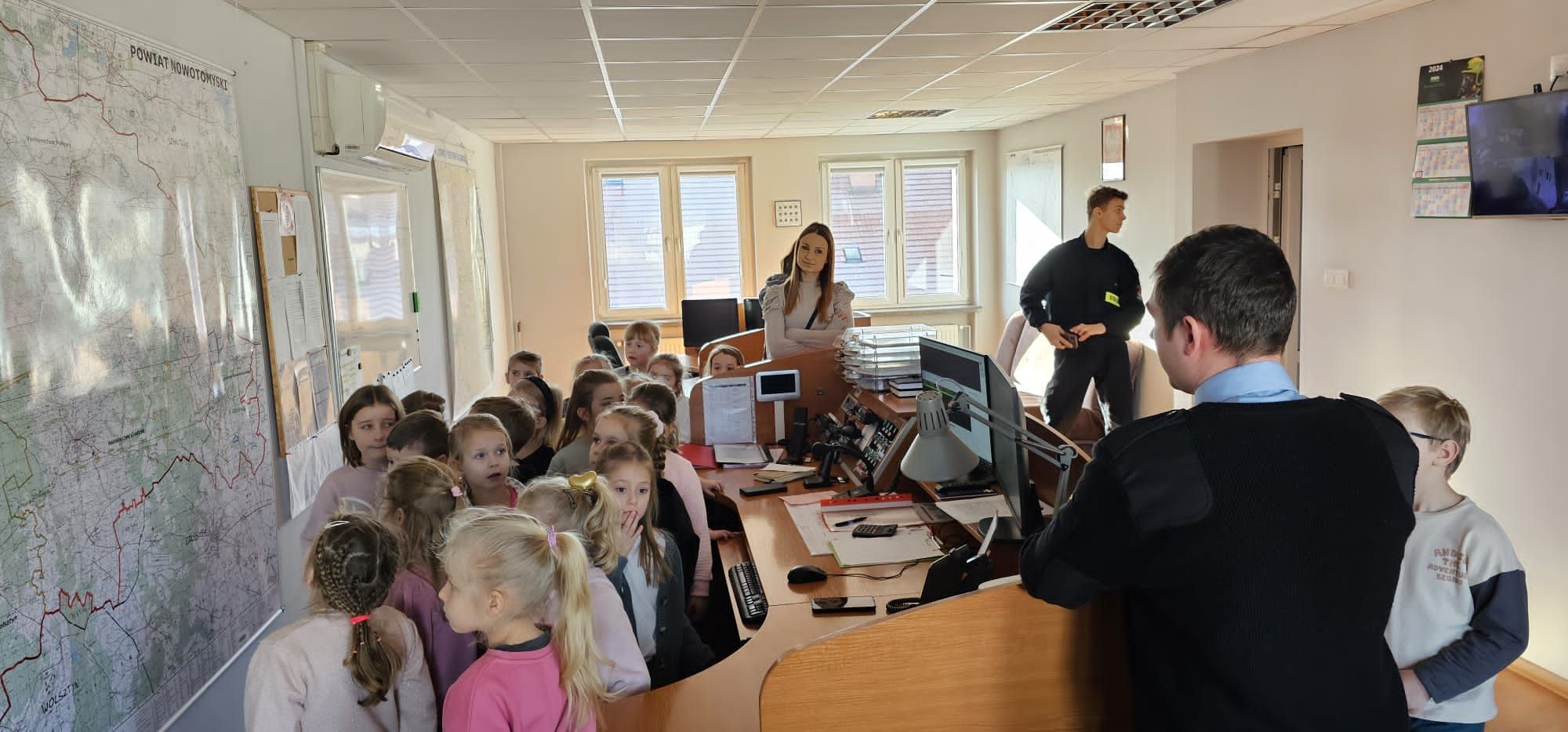 29 stycznia 2024 roku do Komendy Powiatowej Państwowej Straży Pożarnej w Nowym Tomyślu zawitali wychowankowie dwóch grup przedszkolnych Zespołu Szkolno-Przedszkolnego ze Zbąszynia. Dzieci z zapartym tchem słuchały o zagrożeniach, które mogą wystąpić w domu – wykorzystano mobilny symulator zagrożeń domu jednorodzinnego. Przedszkolaki poznały pracę dyspozytora w Stanowisku Kierowania Komendanta Powiatowego oraz spotkały się ze strażakami z Jednostki Ratowniczo-Gaśniczej.