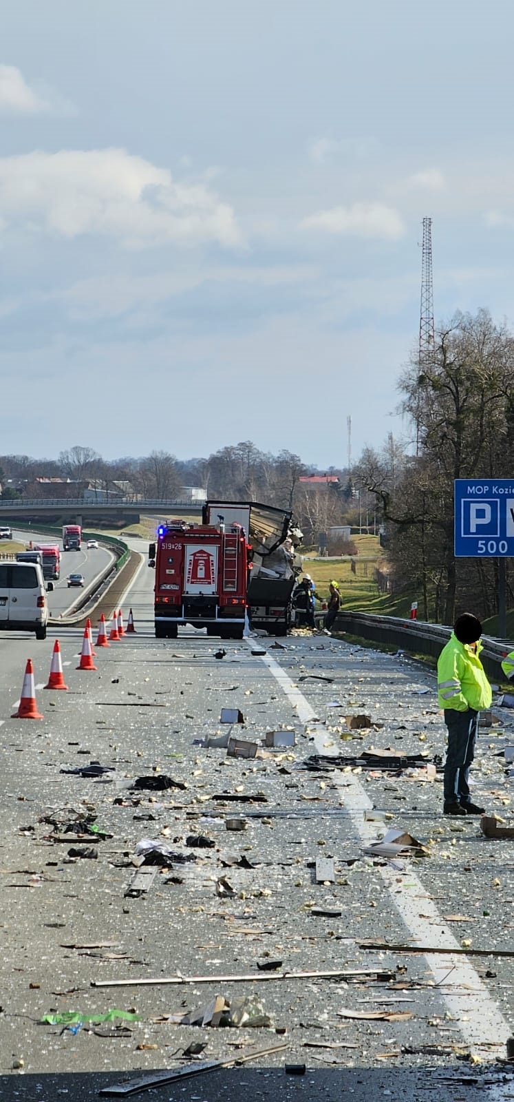 W dniu 14 marca 2023 r. o godzinie 10:08 do Stanowiska Kierowania Komendanta Powiatowego Państwowej Straży Pożarnej w Nowym Tomyślu wpłynęło zgłoszenie o wypadku/kolizji 3 ciężarówek na 113 km A2 nitki południowej (kierunek Poznań).
