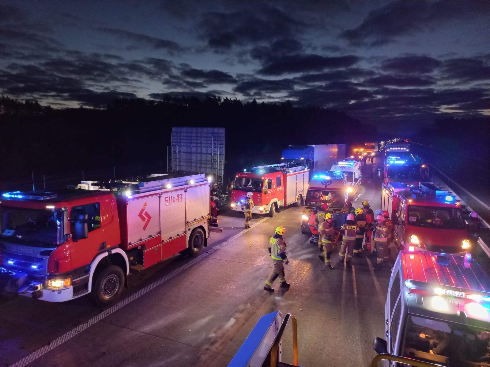 Na czas prowadzonych działań ratowniczych autostrada A2 w kierunku Świecka była zablokowana.