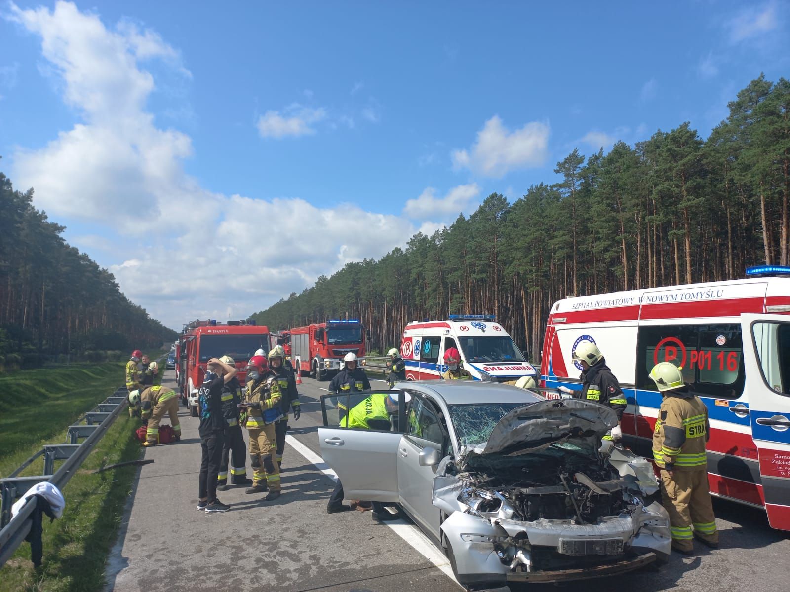 W dniu 21 sierpnia 2021 roku o godz. 11:36 do Stanowiska Kierowania Komendanta Powiatowego PSP w Nowym Tomyślu wpłynęło zgłoszenie o wypadku samochodu osobowego, który uderzył w tył naczepy samochodu ciężarowego na 97km autostrady A2 w kierunku na Warszawę. Dyżurny SKKP do działań zadysponował dwa zastępy ratownictwa technicznego z JRG Nowy Tomyśl oraz jednostkę OSP Zbąszyń i OSP Miedzichowo. Po przyjeździe strażaków na miejsca zdarzenia zastano samochód osobowy Nissan Tida stojący na wolniejszym pasie autostrady A2, a ruch był całkowicie wstrzymany. Zespół Ratownictwa Medycznego przybył na miejsce zdarzenia wraz z pierwszym zastępem straży pożarnej. Nissanem podróżowały łącznie trzy osoby, dwie osoby znajdowały się poza pojazdem natomiast trzecia osoba znajdowała się wewnątrz pojazdu – była przytomna i nie była uwięziona. Samochód ciężarowy przewożący części samochodowe znajdował się na pasie awaryjnym w odległości ok 200 m od samochodu osobowego, a kierowca ciężarówki nie odniósł obrażeń. Działania strażaków polegały na zabezpieczeniu miejsca zdarzenia, odłączeniu akumulatora, zakręceniu zaworu instalacji gazowej w samochodzie osobowym, wyznaczeniu i zabezpieczeniu lądowiska dla Lotniczego Pogotowia Ratunkowego.