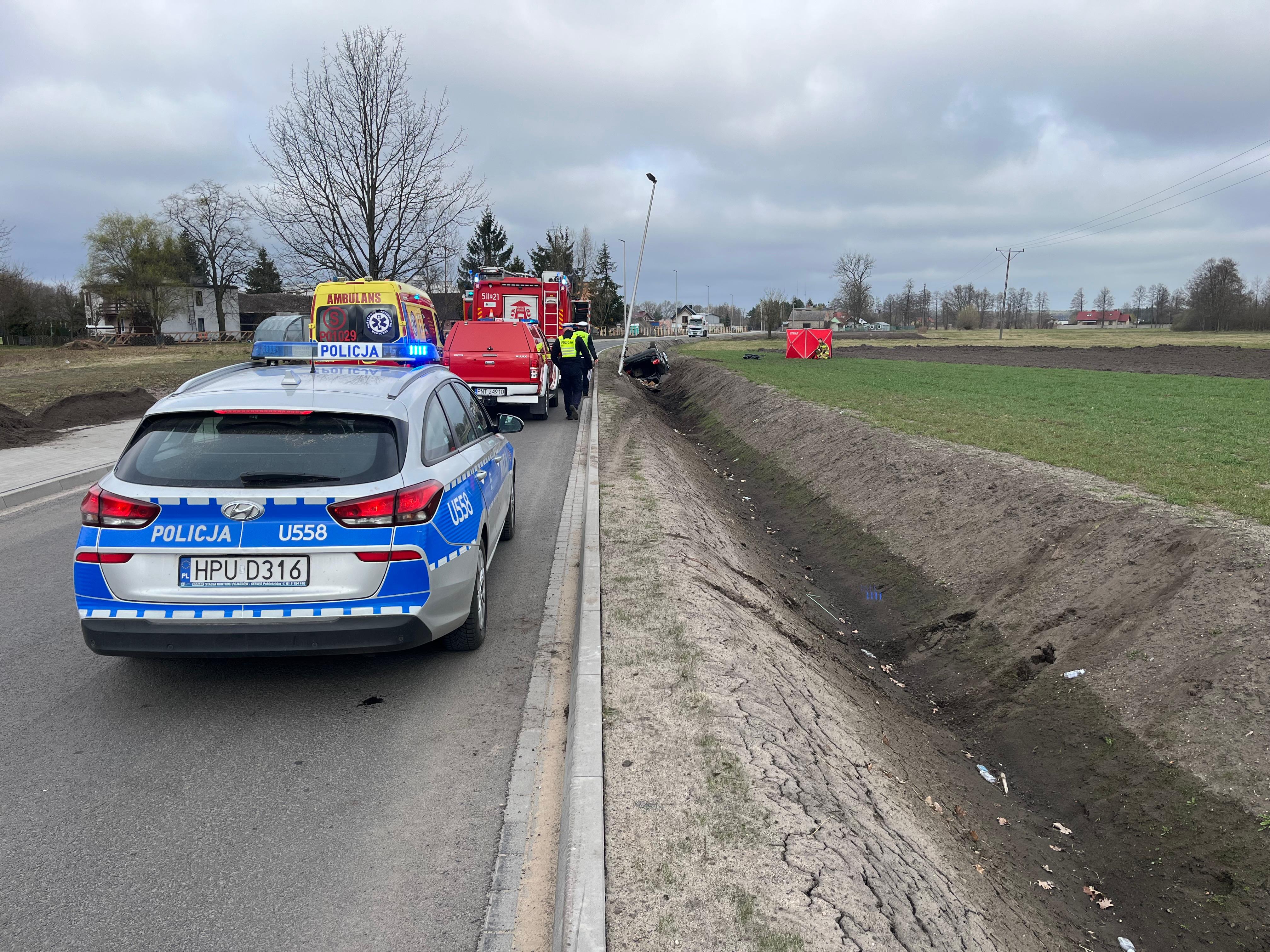 31 marca 2026 r. o godzinie 8:43 do Stanowiska Kierowania Komendanta Powiatowego Państwowej Straży Pożarnej w Nowym Tomyślu wpłynęło zgłoszenie o dachowaniu pojazdu w miejscowości Glinno.