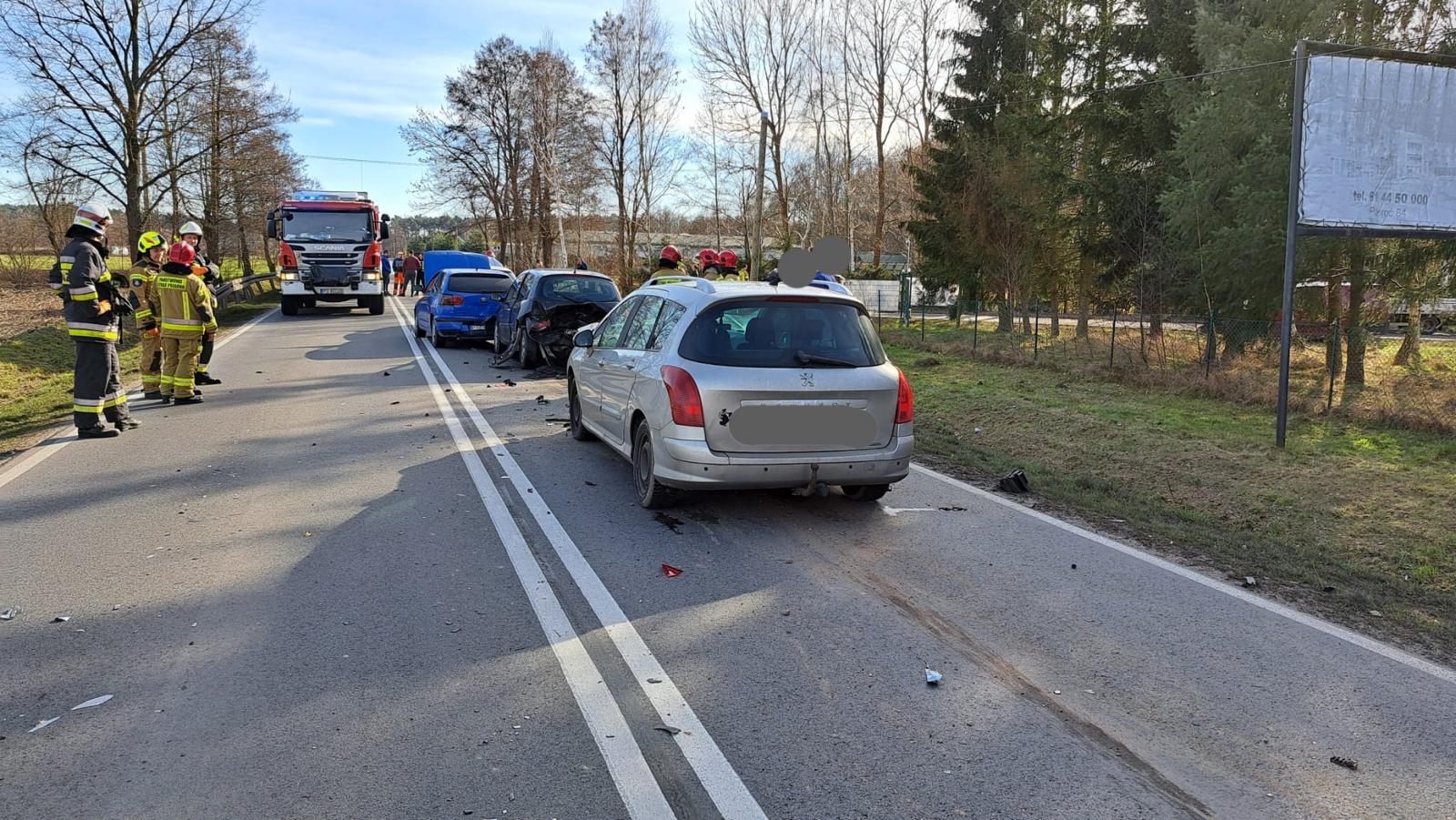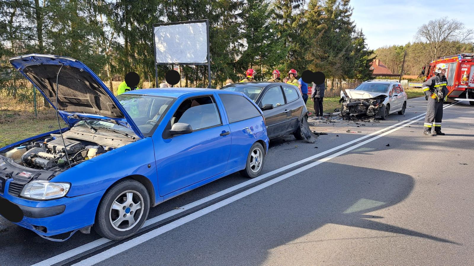Po przybyciu zastępów straży pożarnej na miejsce zdarzenia zastano cztery samochody osobowe po wypadku. Pojazdami podróżowało 8 osób, które przebywały poza pojazdami.