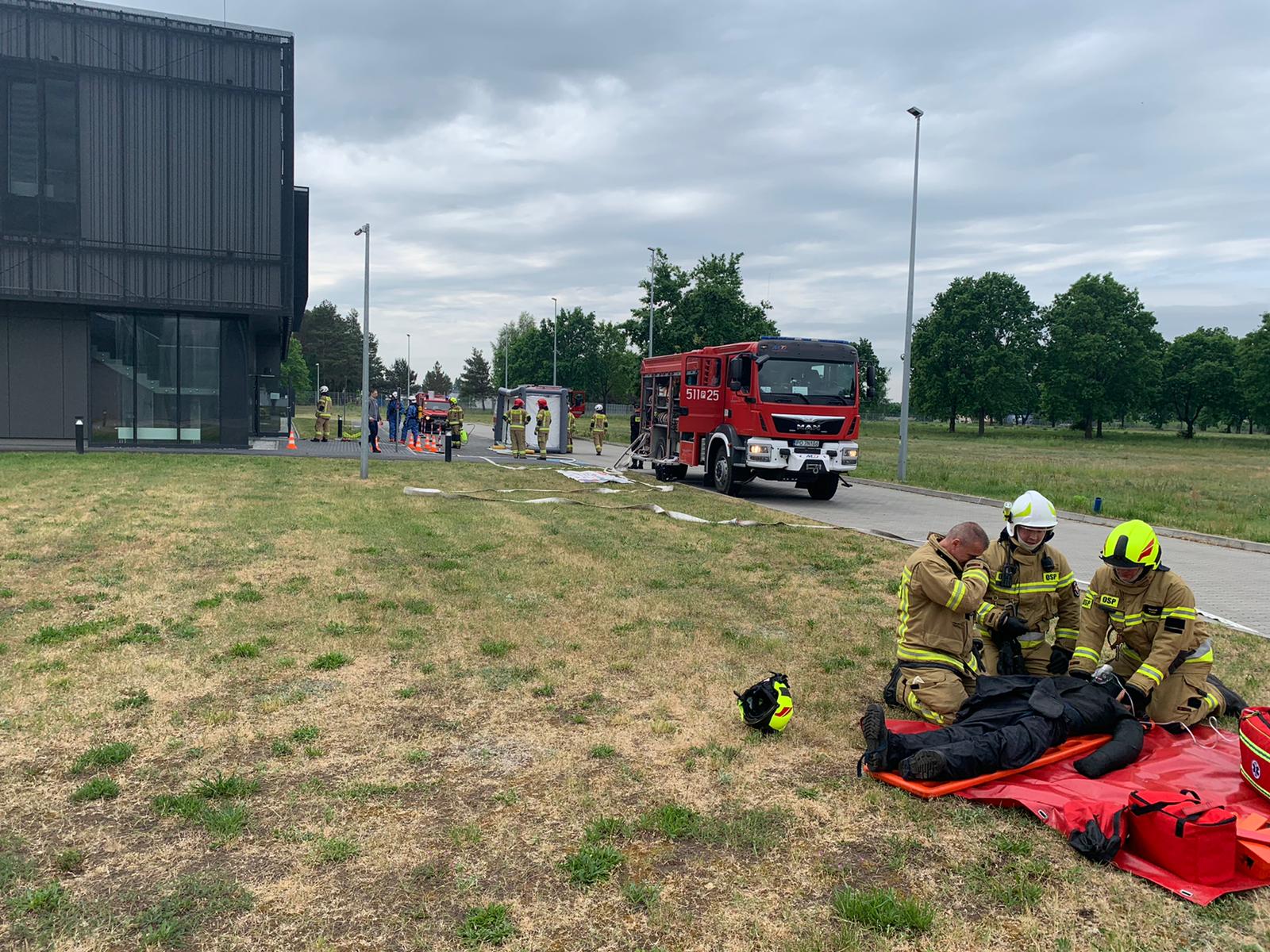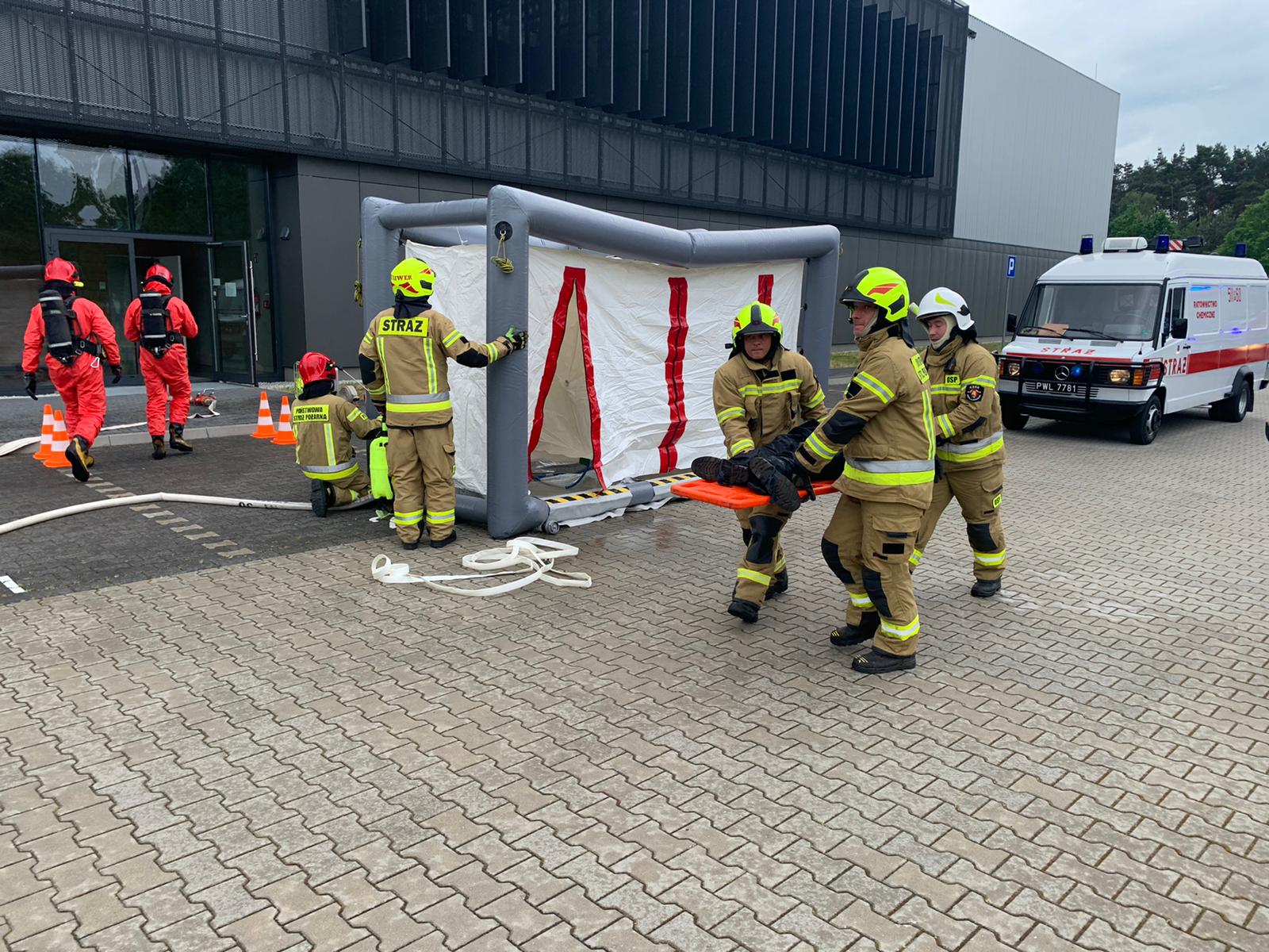 W dniach 24-26.05.2022 roku zostało przeprowadzono operacyjne rozpoznanie zakładu pracy Aesculap Chifa, które połączone zostało z ćwiczeniami praktycznymi na obiekcie sterylizatorni. Zakład Aesculap Chifa w Nowym Tomyślu, należy do jednego z najbardziej rozpoznawalnych i nowoczesnych przedsiębiorstw na terenie naszego kraju. Operacyjne rozpoznanie obiektu było przeprowadzone dla trzech zmian służbowych nowotomyskiej Jednostki Ratowniczo Gaśniczej oraz Ochotniczych Straży Pożarnych z Borui Kościelnej i Bukowca. Zapoznanie i zrealizowane ćwiczenia, miały na celu przybliżenie procesu sterylizacji wyrobów medycznych, przy wykorzystaniu metody chemicznej oraz związanych z nim zagrożeń. Dodatkowo, rozpoznano elementy operacyjnego zabezpieczenia obiektu. Podczas ćwiczeń doskonalono taktyki prowadzenia działań ratowniczo – gaśniczych w przypadku wystąpienia pożaru lub innego zagrożenia, na terenie obiektu sterylizatorni, rozpoznanie dróg dojazdowych oraz zaopatrzenia wodnego, organizację łączności radiowej na potrzeby KDR, ewakuację poszkodowanych do strefy bezpiecznej, udzielanie kwalifikowanej pierwszej pomocy oraz doskonalenie umiejętności wykorzystania infrastruktury przeciwpożarowego zaopatrzenia wodnego, na potrzeby prowadzonych działań. Dzięki zrealizowanym ćwiczeniom strażacy uzyskali wiedzę szczególnie istotną z punktu widzenia ochrony przeciwpożarowej.