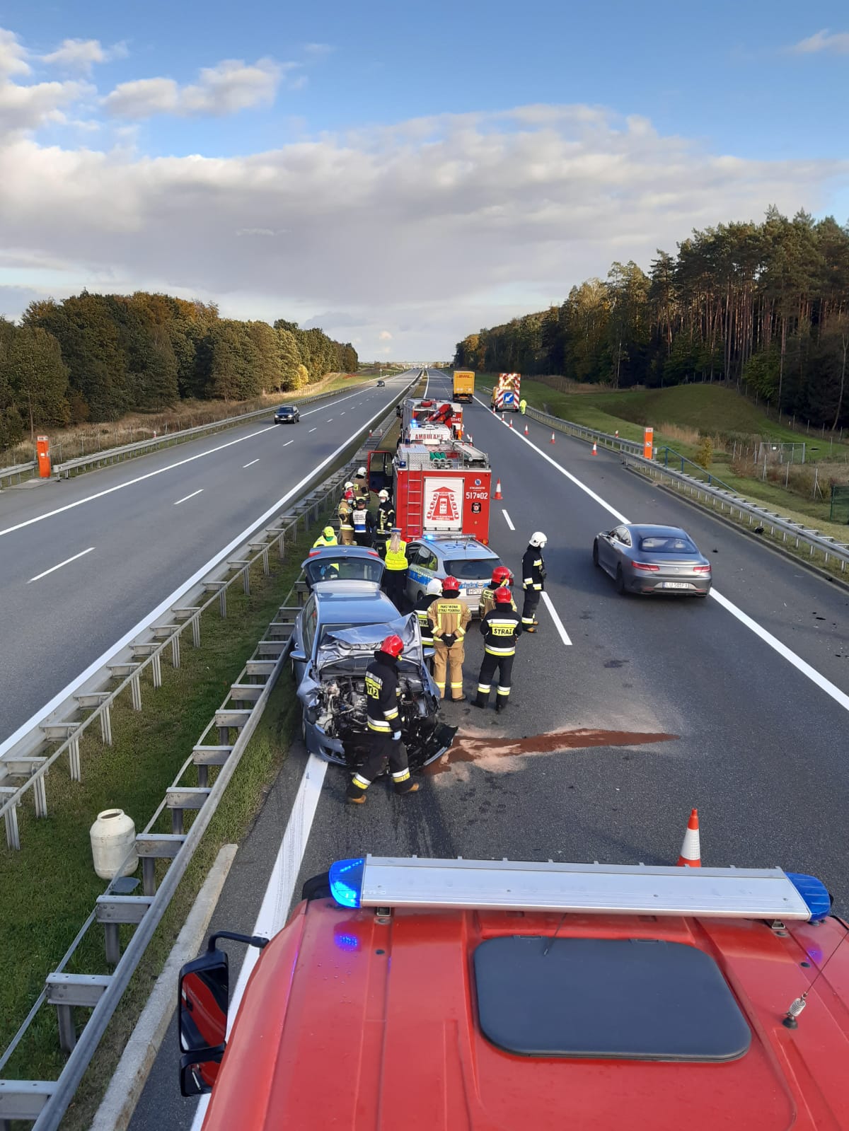 Do niebezpiecznego zdarzenia drogowego doszło w poniedziałek 19. października około godziny 15 na 120 km autostrady A2 w kierunku Warszawy. Informacja o zdarzeniu trafiła do nowotomyskiej komendy za pośrednictwem Centrum Powiadamiania Ratunkowego i dotyczyła zderzenia samochodu osobowego z przyczepą obsługi autostrady w skutek którego jedna osoba została poszkodowana. Działania strażaków polegały na zabezpieczeniu miejsca zdarzenia, udzieleniu kwalifikowanej pierwszej pomocy poszkodowanemu oraz odłączeniu zasilania w pojeździe. Poszkodowany został przekazany przybyłemu zespołowi ratownictwa medycznego, który zdecydował o przetransportowaniu go do szpitala w Nowym Tomyślu. Na miejscu czynności dochodzeniowe prowadzili funkcjonariusze ruchu drogowego nowotomyskiej policji. Na miejscu zdarzenia pracowały również służby utrzymania autostrady.