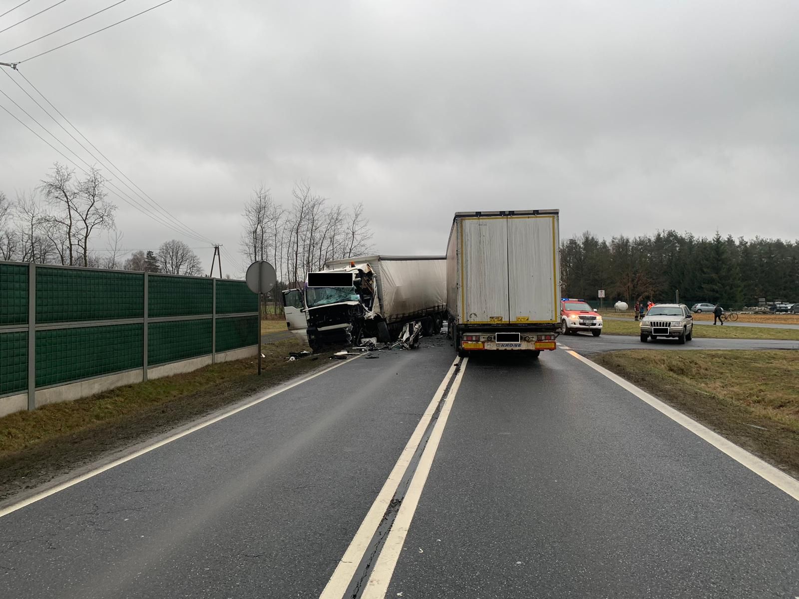 ZDERZENIE DWÓCH CIĘŻARÓWEK I OSOBÓWKI NA OBWODNICY NOWEGO TOMYŚLA
