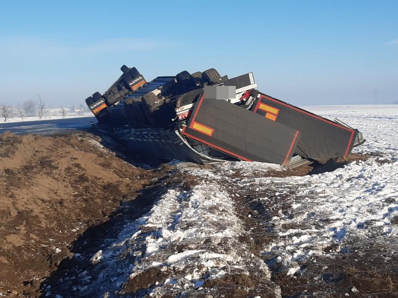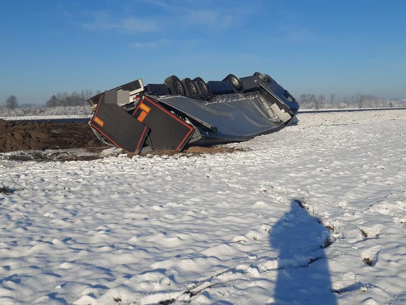 Wypadek samochodu ciężarowego przewożącego substancje niebezpieczne na DW401 między Skoroszycami a Chróściną Nyska.