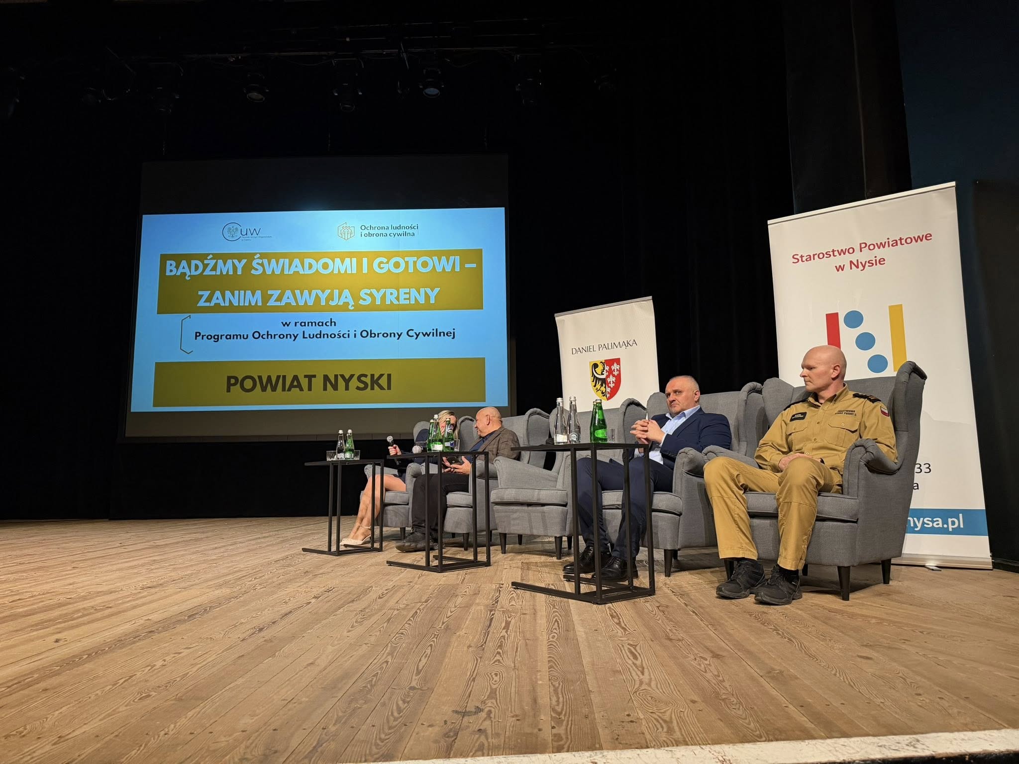 Pod takim hasłem mieszkańcy powiatu nyskiego spotkali się z przedstawicielami władz wojewódzkich, powiatowych oraz służb mundurowych. Wydarzenie zorganizowano z inicjatywy Wojewody Opolskiego Moniki Jurek, Opolskiego Komendanta Wojewódzkiego PSP st. bryg. Arkadiusza Kuśmierskiego oraz Starosty Nyskiego Pana Daniela Palimąki. Podczas spotkania Wojewoda Monika Jurek przybliżyła działania rządu w ramach Programu Ochrony Ludności i Obrony Cywilnej, które są wdrażane na terenie Opolszczyzny. Z kolei Starosta Daniel Palimąka podsumował inwestycje realizowane przez powiat i gminy dzięki środkom rządowym, podkreślając, jak realnie zmieniają one poziom zabezpieczenia mieszkańców. Przed spotkaniem odbyła się prezentacji plecaka ewakuacyjnego, który może okazać się niezbędny podczas sytuacji kryzysowej. Strażacy z Jednostki Ratowniczo – Gaśniczej w Nysie pokazali również zainteresowanym jak udzielać pierwszej pomocy osobom poszkodowanym. Spotkanie w Nysie pokazało, że bezpieczeństwo zaczyna się od prostych, codziennych działań profilaktycznych. Prezentacja sprzętu ratowniczego oraz omówienie założeń obrony cywilnej pozwoliły uczestnikom spojrzeć na sytuacje kryzysowe bez paniki, za to z konkretnym planem działania. W trakcie spotkania Komenda Powiatowa PSP w Nysie rozdawała również czujki dymu i tlenku węgla.