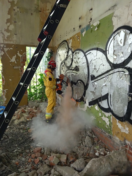 - podnoszeniu konstrukcji betonowych za pomocą poduszek wysokociśnieniowych, wykonywaniu przebić w ścianach, celem dotarcia do osób poszkodowanych