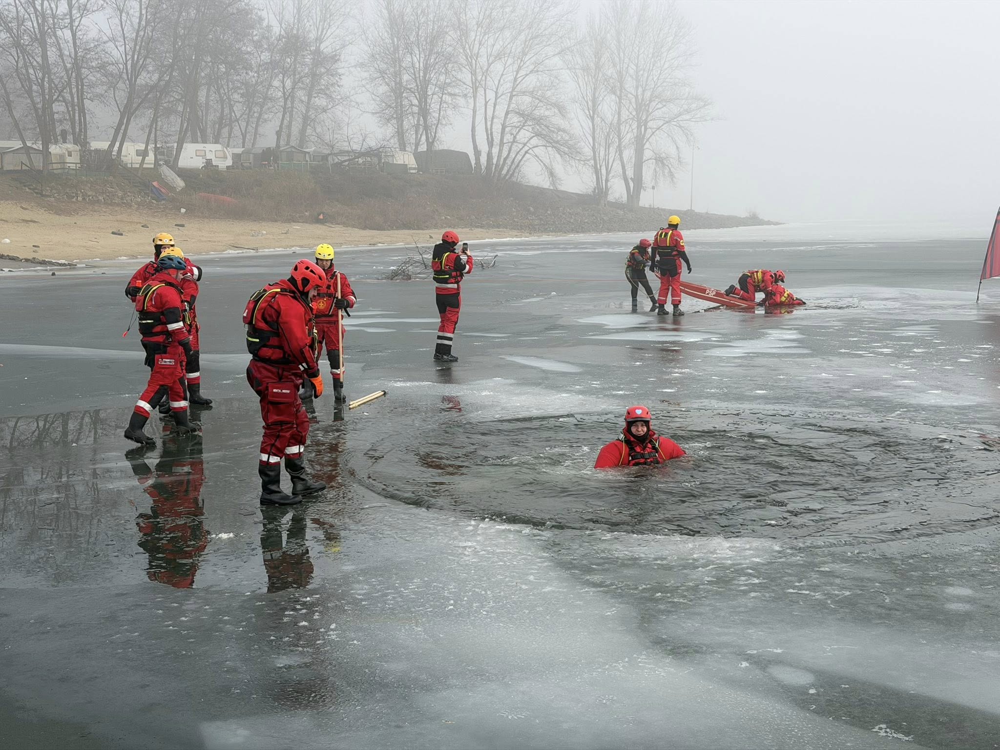 Ćwiczenia z ratownictwa lodowego na stanicy WOPR Nysa