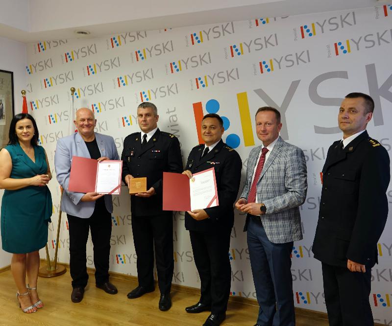 Podziękowania odebrali st. bryg. mgr inż. Krzysztof KĘDRYK Opolski Komendant Wojewódzki Państwowej Straży Pożarnej, st. bryg. mgr inż. Arkadiusz KUŚMIERSKI zastępca Opolskiego Komendanta Wojewódzkiego Państwowej Straży Pożarnej oraz mł. bryg. mgr inż. Marcin SKALNY z-ca Komendanta Powiatowego Państwowej Straży Pożarnej w Nysie.