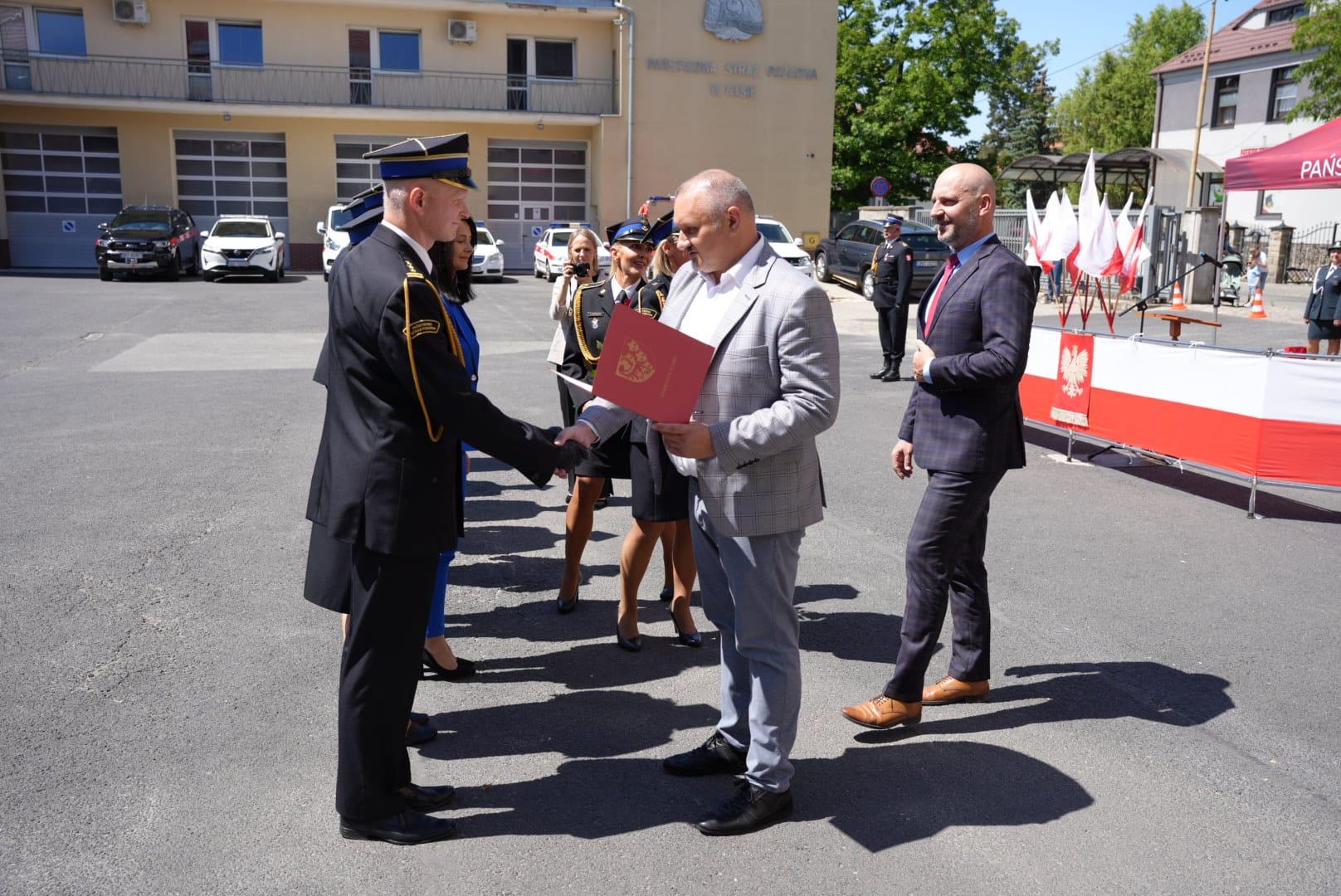 W dniu 15 maja 2024r. o godzinie 12:00 w Komendzie Powiatowej Państwowej Straży Pożarnej w Nysie odbyły się Powiatowe obchody Dnia Strażaka. Meldunek o rozpoczęciu uroczystości został złożony st. bryg. Arkadiuszowi Kuśmierskiemu - Zastępcy Opolskiego Komendanta Wojewódzkiego PSP w Opolu przez Zastępcę Komendanta Powiatowego PSP w Nysie bryg. Marcina Skalnego. Następnym etapem uroczystości było przywitanie zaproszonych gości przez Komendanta Powiatowego PSP w Nysie st. bryg. Pawła Gotkowskiego. Po odczytaniu wyciągów z rozkazów personalnych wręczono odznaczenia, awanse i nagrody. Dziękujemy serdecznie wszystkim zaproszonym gościom przybyłym na naszą uroczystość.
