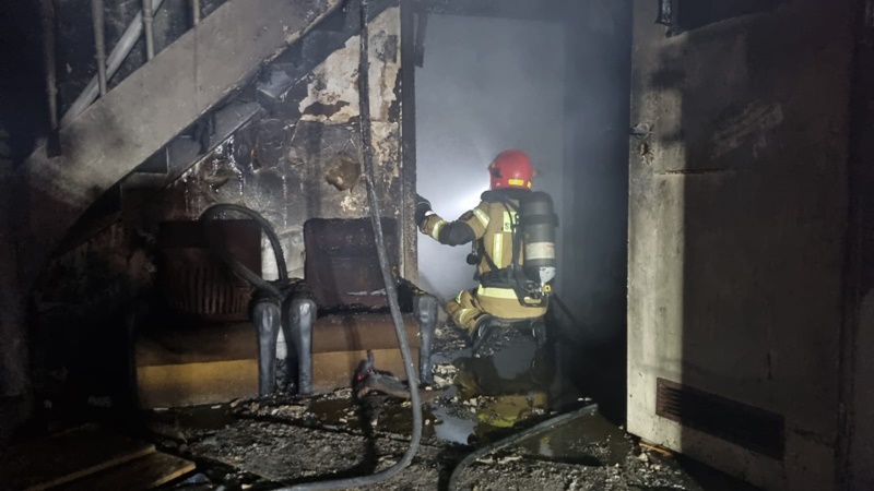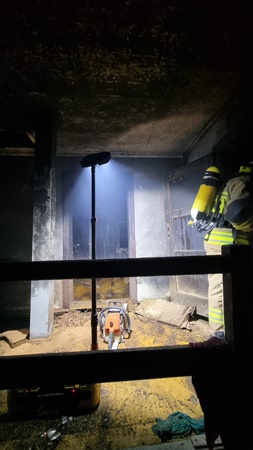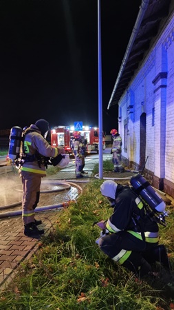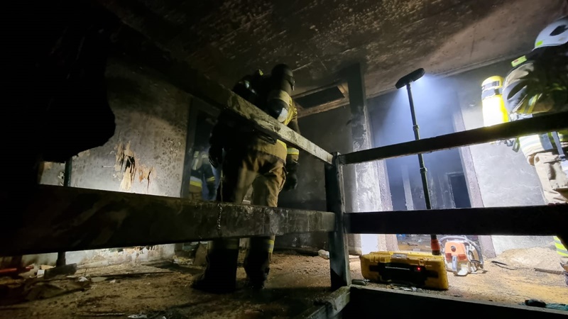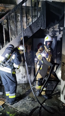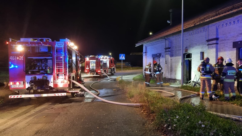 Do zdarzenia zadysponowano 3 zastępy z JRG PSP nr 1 Nysa oraz zastęp OSP Rusocin. Po alarmowym przybyciu na miejsce zdarzenia zabezpieczono teren działań. W wyniku przeprowadzonego rozpoznania ustalono, że doszło do pożaru wewnątrz budynku portierni na parterze oraz pierwszym piętrze. Działania zastępów JOP polegały na sforsowaniu drzwi wejściowych do budynku przy wykorzystaniu podręcznego sprzętu burzącego. Po wejściu do budynku podano dwa prądy wody w natarciu na źródło pożaru. W trakcie prowadzonych działań przeszukano pomieszczenia w obiekcie pod względem przebywania osób, nie stwierdzając żadnej osoby wewnątrz. Dalsze działania polegały na przeprowadzeniu niezbędnych prac rozbiórkowych w celu zlokalizowania ukrytych zarzewi ognia oraz ugaszeniu prądem wody.