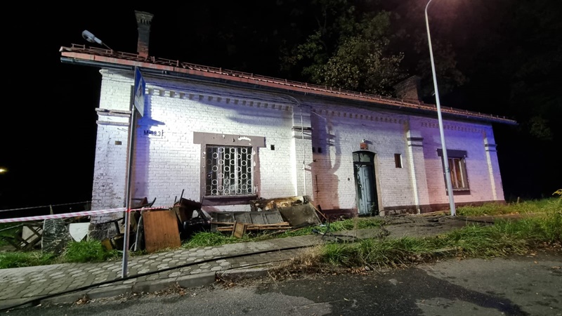 Pożar budynku portierni FSD przy ul. Szlak Chrobrego - Nysa.
