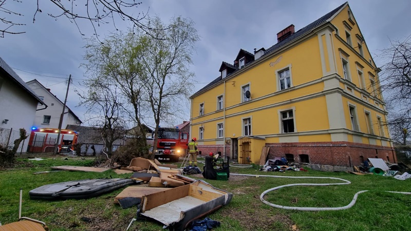 Pożar mieszkania w budynku wielorodzinnym przy ul. Krawieckiej - Nysa.