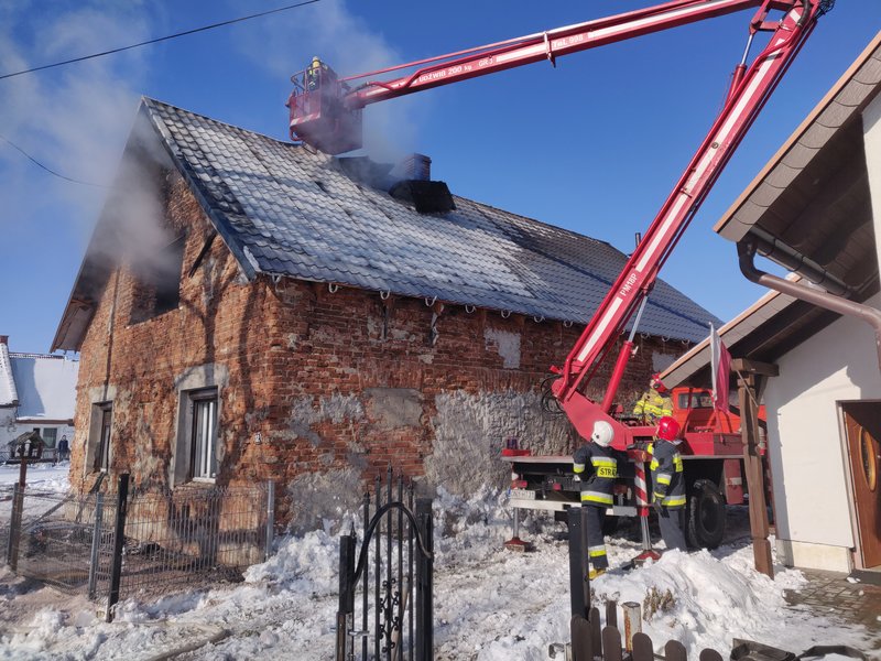 Do zdarzenia zadysponowano 2 zastępy z JRG PSP nr 1 Nysa, zastęp OSP Bielice, 2 zastępy OSP Łambinowice, 2 zastępy OSP Włostowa, zastęp OSP Korfantów, zastęp OSP Jasienica Dolna. Po alarmowym przybycia na miejsce zdarzenia zabezpieczono teren działań. W wyniku przeprowadzonego rozpoznania ustalono, że doszło do pożaru poddasza w budynku jednorodzinnym, cztery osoby w tym dwójka dzieci ewakuowała się samodzielnie jeszcze przed przybyciem zastępów JOP. Działania JOP polegały na podaniu jednego prądu wody w obronie na sąsiedni budynek mieszkalny oraz trzech prądów wody w natarciu do wnętrza poddasza, ewakuowaniu mienia z parteru. Dalsze działania polegały na wykonaniu prac rozbiórkowych połaci dachu oraz stropów. Spalone elementy budynku wynoszono na zewnątrz sukcesywnie dogaszając. Na spaloną więźbę dachową oraz strop podano prąd piany ciężkiej celem zabezpieczenia konstrukcji przed ponownym zapaleniem.