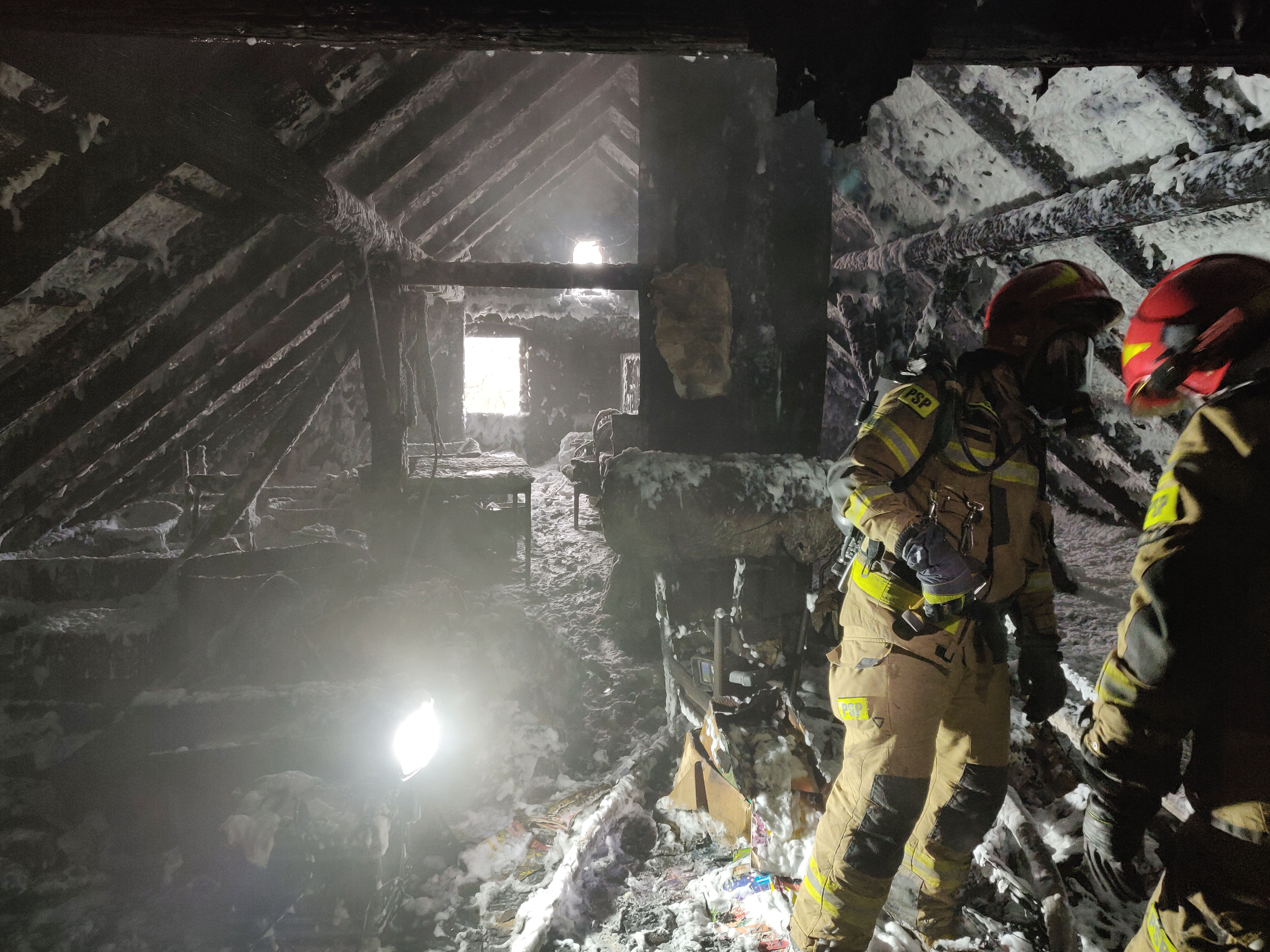 Do zdarzenia zadysponowano 4 zastępy z JRG PSP nr 1 Nysa, 2 zastępy OSP Niwnica, zastęp OSP Kępnica oraz zastęp OSP Wierzbięcice. Po alarmowym przybyciu na miejsce zdarzenia zabezpieczono teren działań. W wyniku przeprowadzonego rozpoznania ustalono, że doszło do pożaru poddasza w budynku jednorodzinnym, 8 osób ewakuowało się samodzielnie przed przybyciem zastępów JOP. Działania JOP polegały na podaniu jednego prądu piany w natarciu na palące się poddasze budynku. W wyniku prowadzonych działań gaśniczych przeprowadzono prace rozbiórkowe usuwając część połaci dachu oraz stropu między poddaszem a pomieszczeniami poniżej. Po zakończeniu działań gaśniczych ponownie sprawdzono budynek za pomocą kamery termowizyjnej, wykluczając ukryte zarzewia ognia.