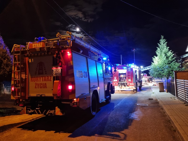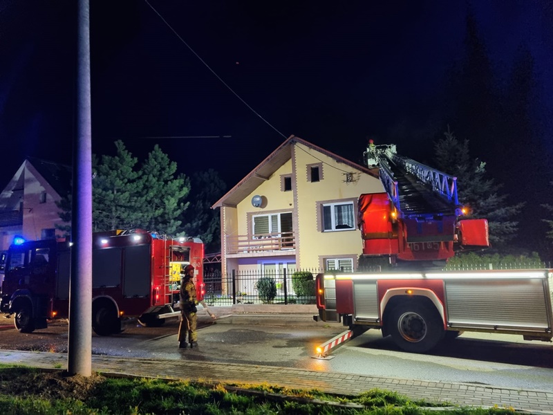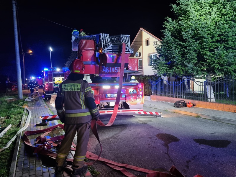 Po przybyciu na miejsce zdarzenia potwierdzono treść zgłoszenia. Zastano rozwinięty pożar poddasza w budynku jednorodzinnym. Pierwsze działania strażaków polegały na rozwinięciu linii gaśniczych i zlokalizowaniu źródła pożaru. Następnie ratownicy wyposażeni w sprzęt ochrony układu oddechowego udali się do wewnątrz budynku celem zlokalizowania źródła pożaru. Bardzo szybko zlokalizowano miejsce, gdzie prawdopodobnie powstał pożar. W momencie przybycia zastępów straży pożarnej wszyscy lokatorzy przebywali na zewnątrz. W trakcie akcji gaśniczej jedna z lokatorek domu, znajdująca się na zewnątrz źle się poczuła i doszło do nagłego zatrzymania krążenia. Niezwłocznie przystąpiono do resuscytacji krążeniowo - oddechowej. Pomimo wysiłku ratowników PSP oraz ZRM nie udało się uratować kobiety. Lekarz stwierdził zgon.