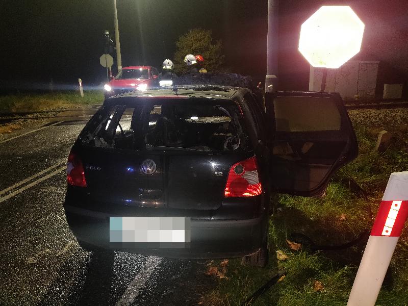 Do zdarzenia zadysponowano zastęp z JRG PSP nr 1 Nysa oraz zastęp OSP Budzieszowice. Po alarmowym przybyciu na miejsce zdarzenia zabezpieczono teren działań. W wyniku przeprowadzonego rozpoznania ustalono, że: doszło do pożaru samochodu osobowego VW Polo w wyniku uderzenia pojazdu w betonową lampę znajdującą się przed przejazdem kolejowym, pojazdem podróżował tylko kierujący, który opuścił pojazd samodzielnie jeszcze przed przybyciem zastępów JOP na miejsce zdarzenia, brak osób poszkodowanych. Działania JOP polegały na: podaniu prądu wody w natarciu na palący się pojazd do całkowitego jego ugaszenia.