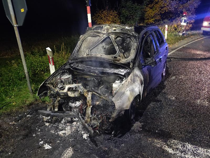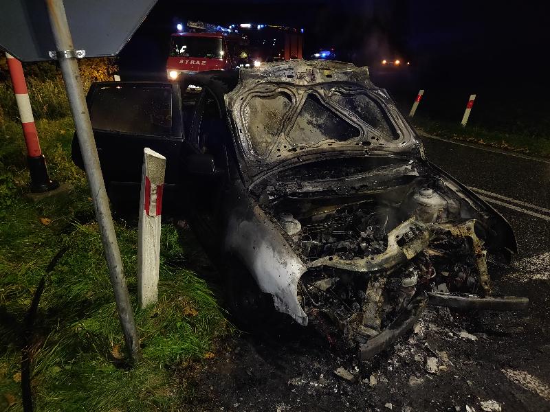 Pożar samochodu osobowego przed przejazdem kolejowym Budzieszowice - Łambinowice.