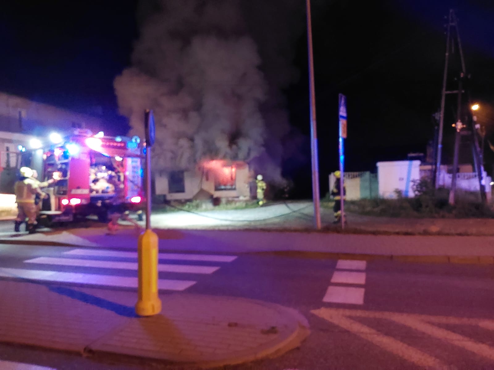Po alarmowym przybyciu na miejsce zdarzenia zabezpieczono teren działań. W wyniku przeprowadzonego rozpoznania potwierdzono pożar sklepu spożywczego, brak osób poszkodowanych.