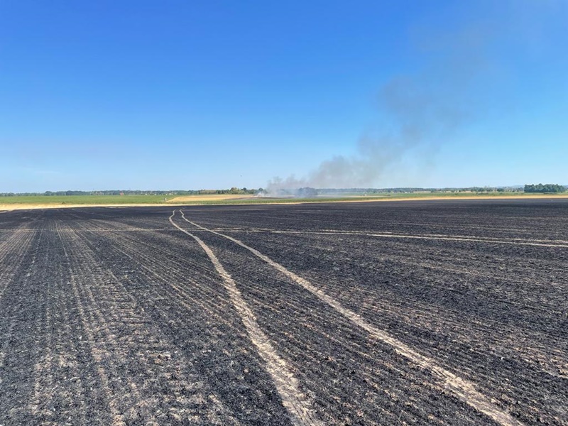 Spaleniu uległo 38 hektarów pól uprawnych, w tym 1 hektar zboża na pniu.