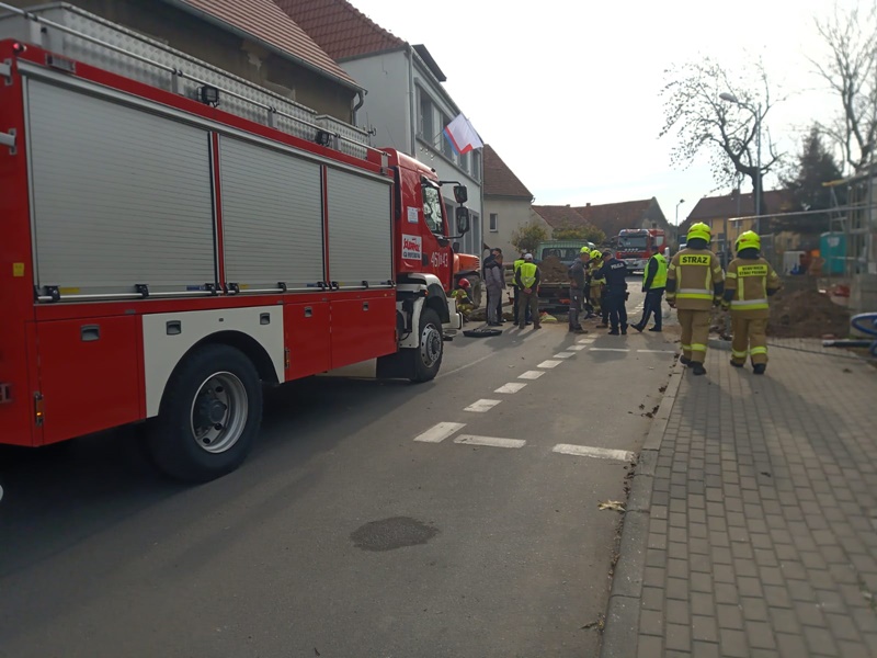 Po alarmowym przybyciu na miejsce zdarzenia zabezpieczono teren działań. W wyniku przeprowadzonego rozpoznania ustalono, że w trakcie prowadzenia prac ziemnych koparka uszkodziła gazociąg. Działania zastępów JOP polegały na: ewakuacji ludzi z budynków znajdujących się w najbliższej odległości od uszkodzonego gazociągu – łącznie ewakuowano 51 osób w tym 10 dzieci. Po zakręceniu zaworu gazu na rurociągu przez Pogotowie Gazowe, sprawdzono ponownie czy występuje strefa zagrożona wybuchem – brak zagrożenia.