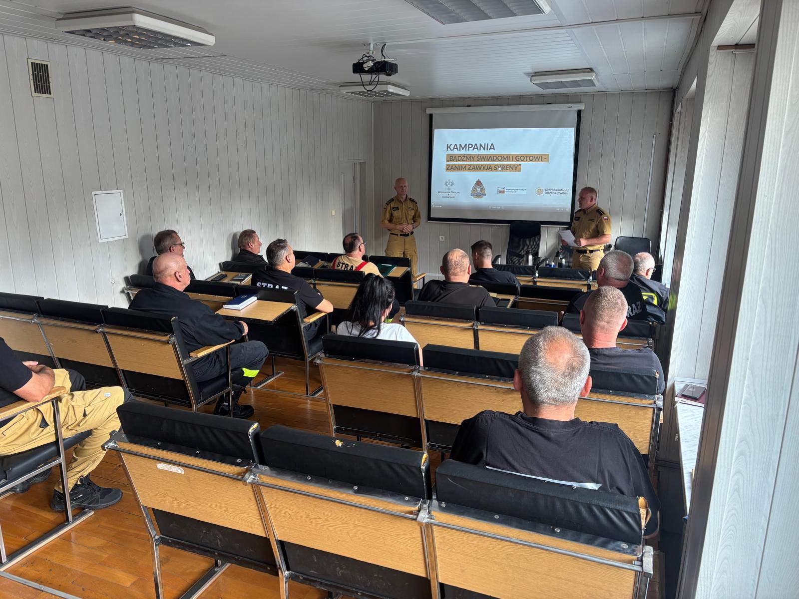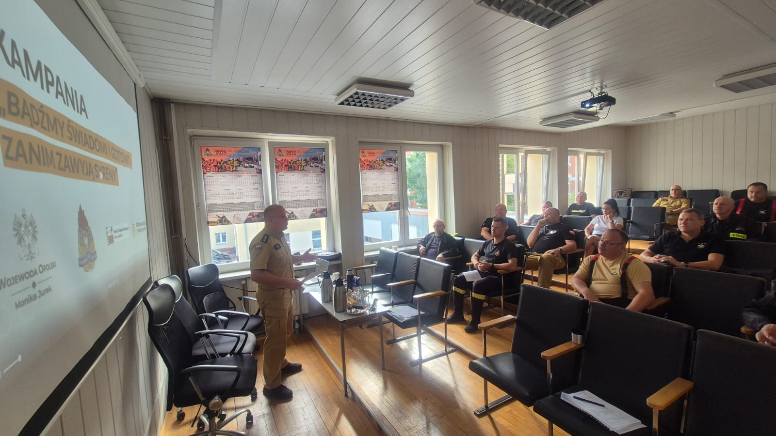 W dniu 29 sierpnia 2025 roku w Komendzie Powiatowej Państwowej Straży Pożarnej w Nysie odbyło się spotkanie z przedstawicielami Jednostek Ochotniczych Straży Pożarnych z powiatu nyskiego, dotyczące kampanii "Bądźmy świadomi i gotowi - zanim zawyją syreny".