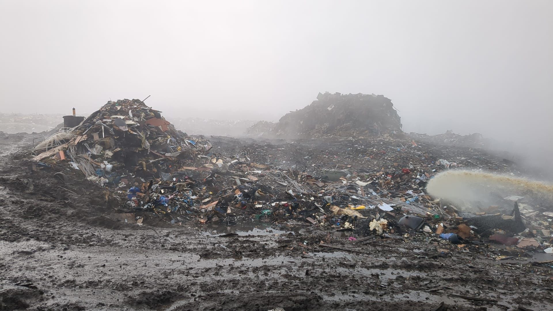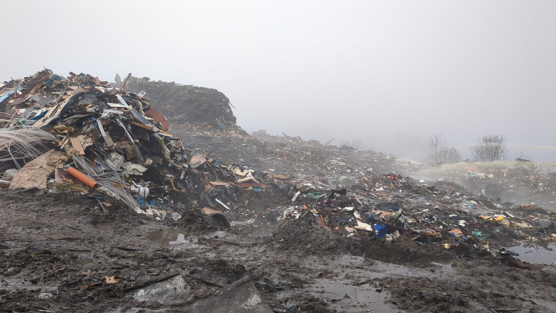 Tlące się odpady popowodziowe na wysypisku śmieci w Domaszkowicach