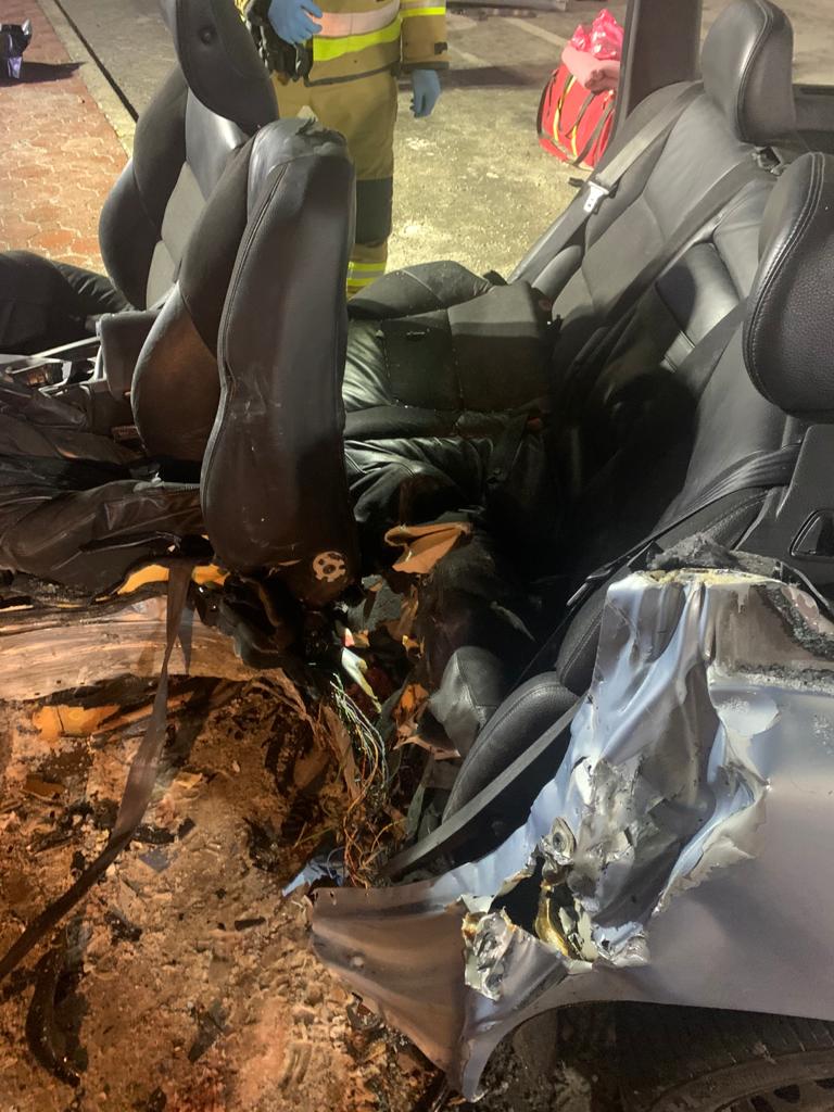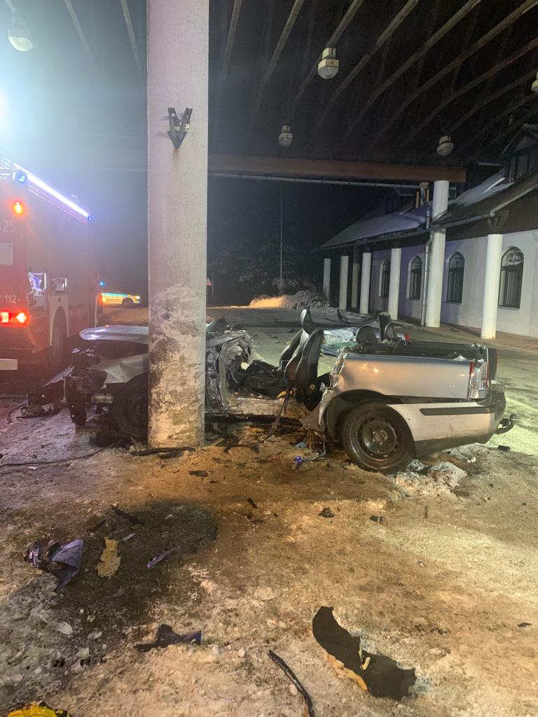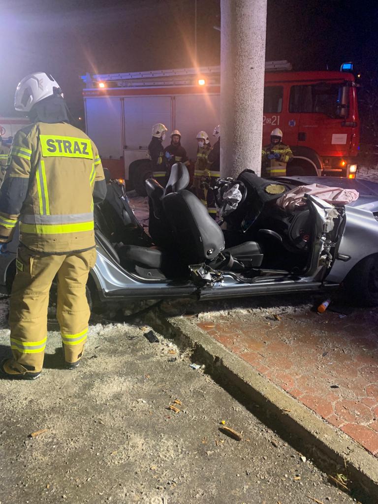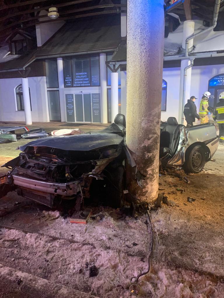 Do zdarzenia zadysponowano 2 zastępy z JRG PSP nr 2 Głuchołazy oraz 2 zastępy OSP Jarnołtówek. Po alarmowym przybyciu na miejsce zdarzenia zabezpieczono teren działań. W wyniku przeprowadzonego rozpoznania ustalono, iż doszło do uderzenia samochodu marki Volvo w słup betonowy podtrzymujący wiatę terminala przejścia granicznego znajdującego się na terenie Republiki Czeskiej, trzy osoby poszkodowane znajdowały się wewnątrz zniszczonego pojazdu. Za pomocą urządzeń hydraulicznych wykonano dostęp do osób poszkodowanych a następnie ewakuowano je na zewnątrz. W wyniku poniesionych obrażeń lekarz stwierdził zgon dwóch mężczyzn natomiast pasażerka została zabrana do szpitala w Nysie. Dalsze działania polegały na oświetleniu miejsca zdarzenia. Następnie na miejscu zdarzenia czynności dochodzeniowo-śledcze prowadziła czeska policja oraz prokuratura. Po przybyciu na miejsce zdarzenia strażaków z Jesenika działania zakończono i powrócono do jednostki.