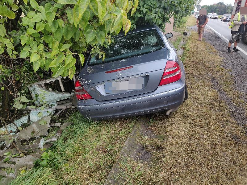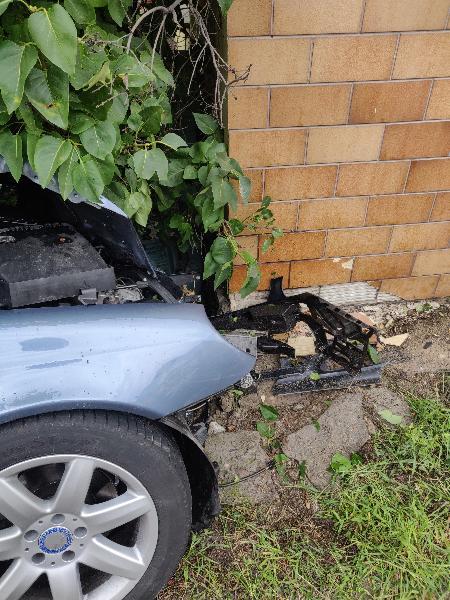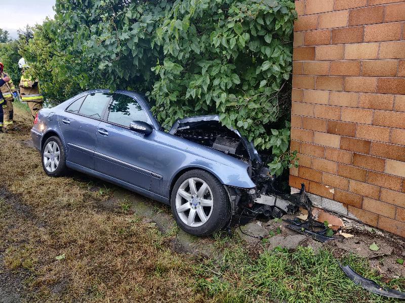 Uderzenie samochodu osobowego w budynek mieszkalny.