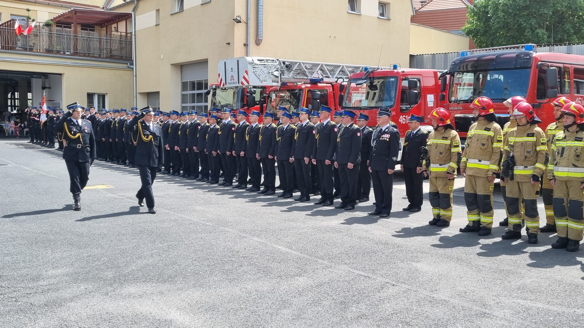 23 maja 2022 r. o godz. 12:00 na placu wewnętrznym Komendy Powiatowej Państwowej Straży Pożarnej w Nysie odbyły się uroczyste obchody z okazji Dnia Strażaka.