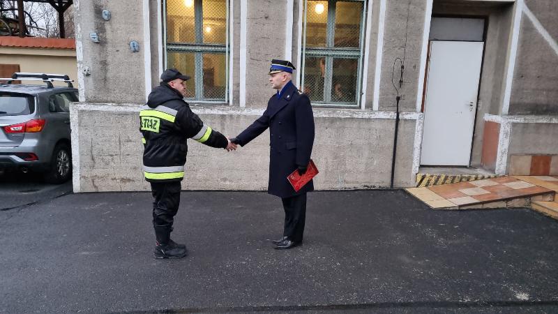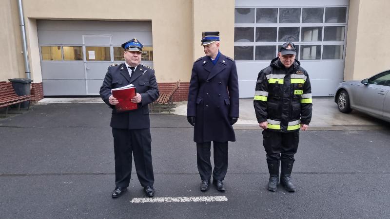 bryg. Paweł Gotkowski Komendant Powiatowy PSP w Nysie, w obecności funkcjonariuszy JRG PSP Nysa oraz KP PSP Nysa, podziękował funkcjonariuszowi za służbę, życząc jednocześnie zdrowia i powodzenia na nowym etapie życia.