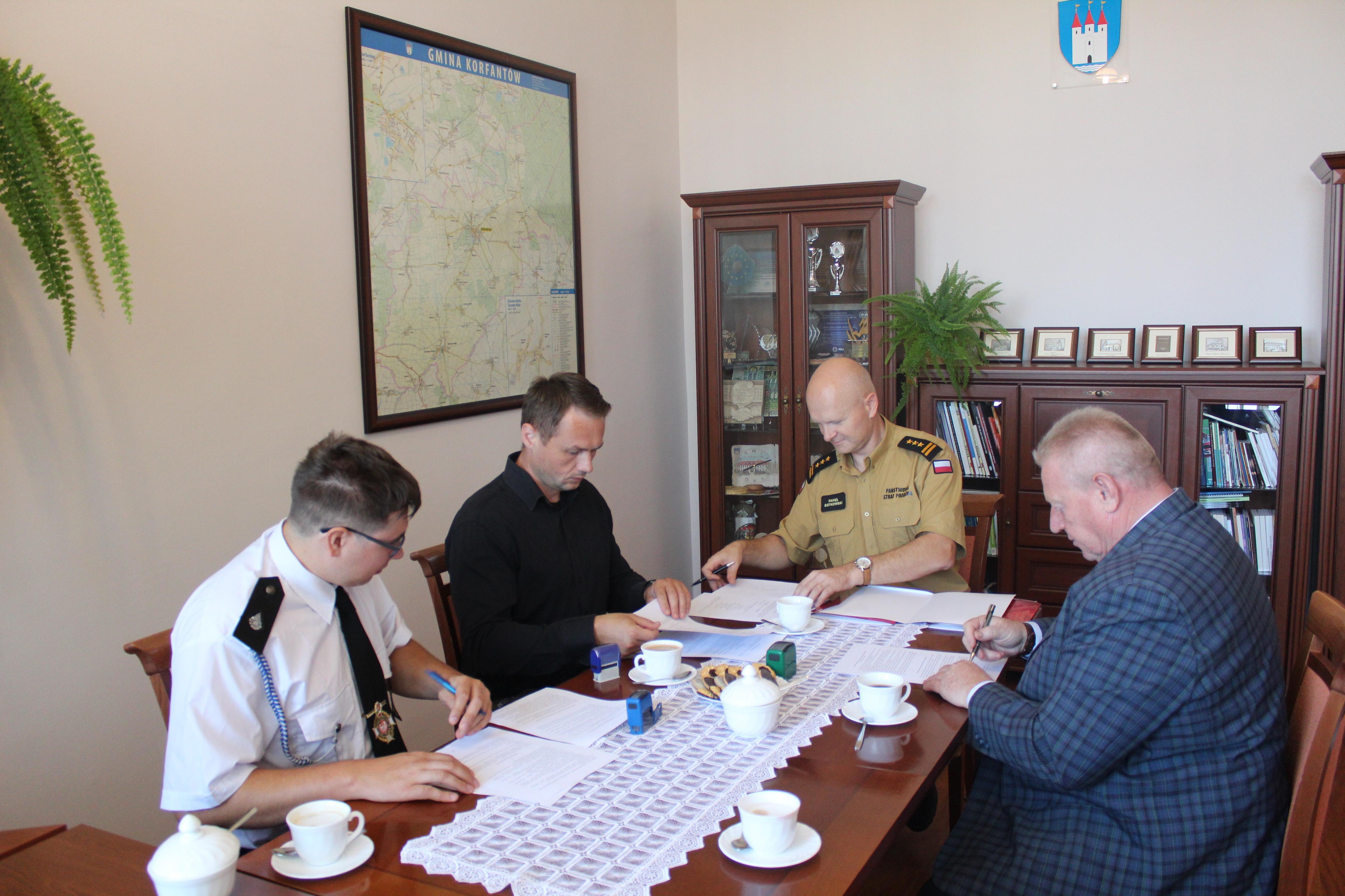 W dniu 14 sierpnia 2024r. w Urzędzie Miejskim w Korfantowie zostało podpisane porozumienie o włączeniu jednostki OSP w Przechodzie do Krajowego Systemu Ratowniczo - Gaśniczego na kolejne pięć lat. W podpisaniu porozumienia uczestniczyli Burmistrz Gminy Korfantów Pan Janusz Wójcik, Komendant Powiatowy PSP w Nysie st. bryg. Paweł Gotkowski, Prezes OSP Przechód Pan Krzysztof Sporek oraz Naczelnik OSP Przechód Pan Szymon Hoffman.