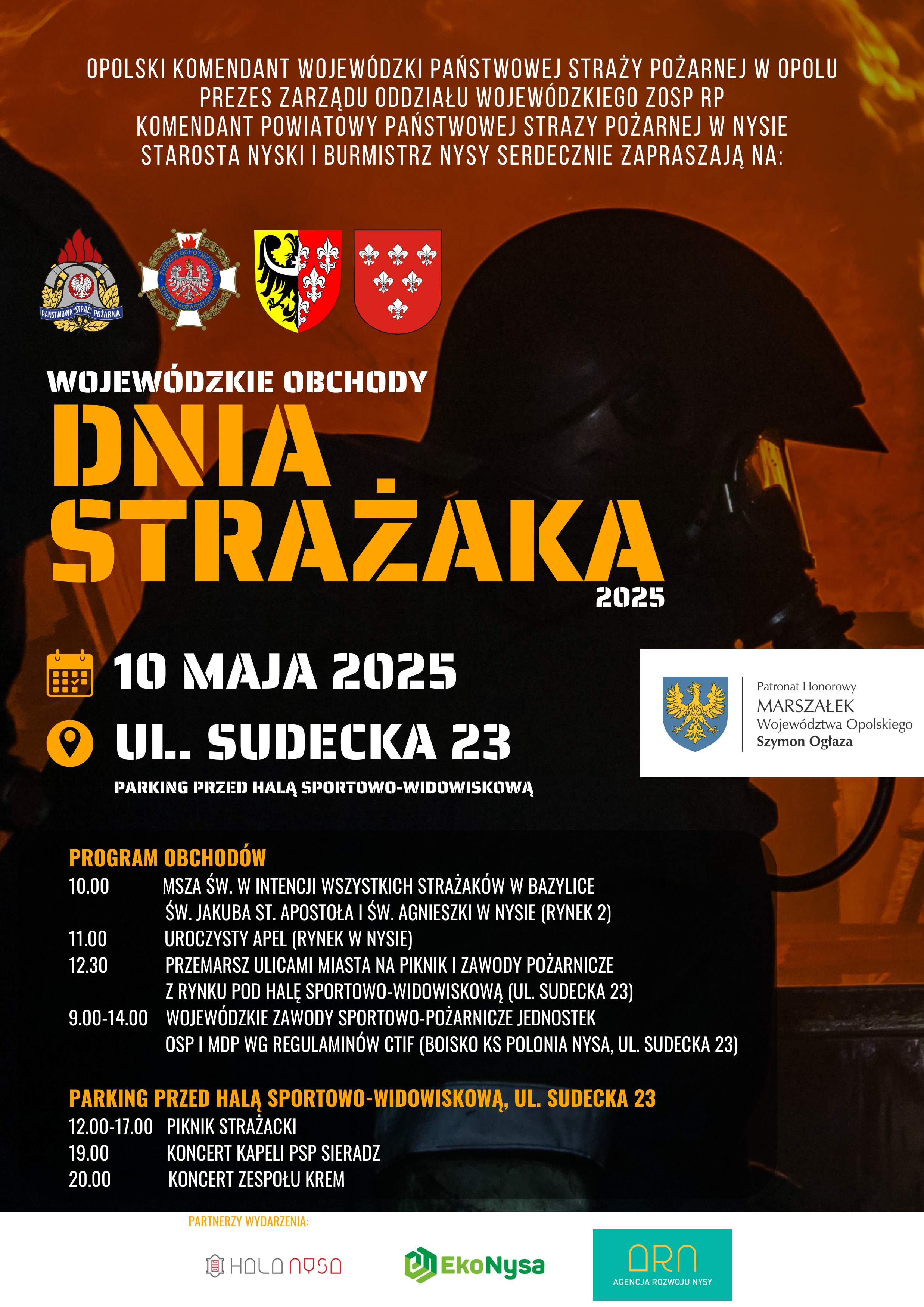 Serdecznie zapraszamy na Wojewódzkie Obchody Dnia Strażaka, które odbędą się 10 maja 2025 roku w Nysie.