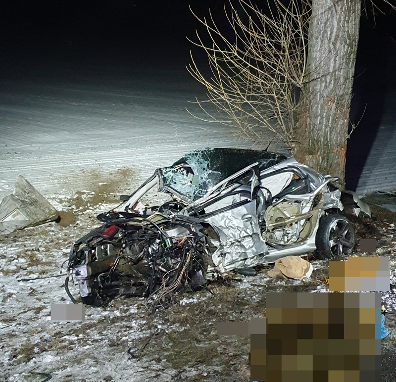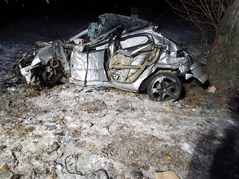 W wyniku przeprowadzonego rozpoznania ustalono, że w wyniku uderzenia w przydrożne drzewo samochodu osobowego Peugeot 206, kierujący znalazł się poza pojazdem. Z powodu odniesionych obrażeń, nie udało się uratować życia kierowcy. Przybyły na miejsce lekarz stwierdził zgon. Droga w miejscu wypadku była zablokowana przez blisko cztery godziny, gdzie Policja pod nadzorem Prokuratora prowadziła swoje czynności.