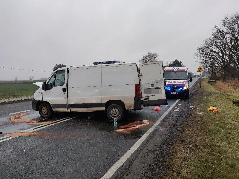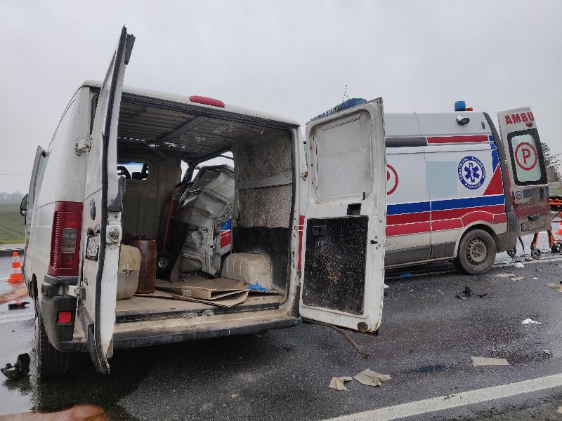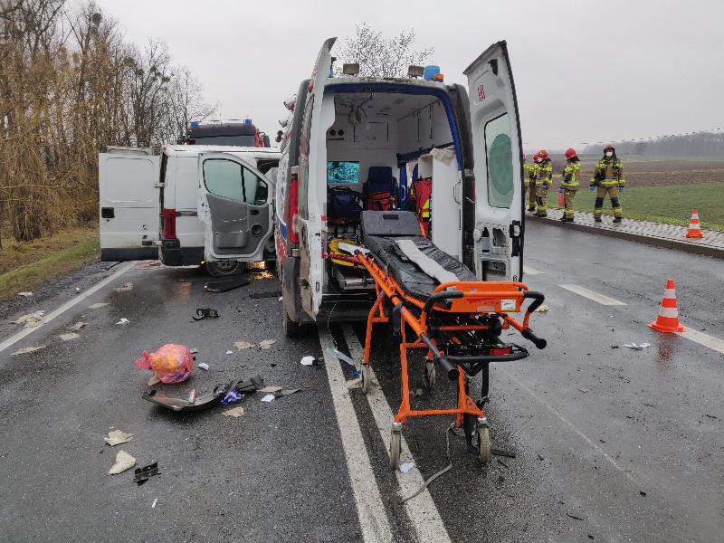 Zderzenie ambulansu z samochodem dostawczym na DK46 - Strobice.