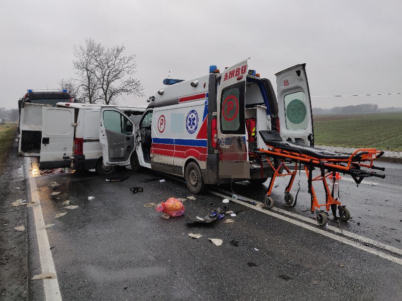 w wyniku zdarzenia 4 osoby zostały poszkodowane: 3 osoby podróżujące ambulansem oraz kierujący samochodem dostawczym;