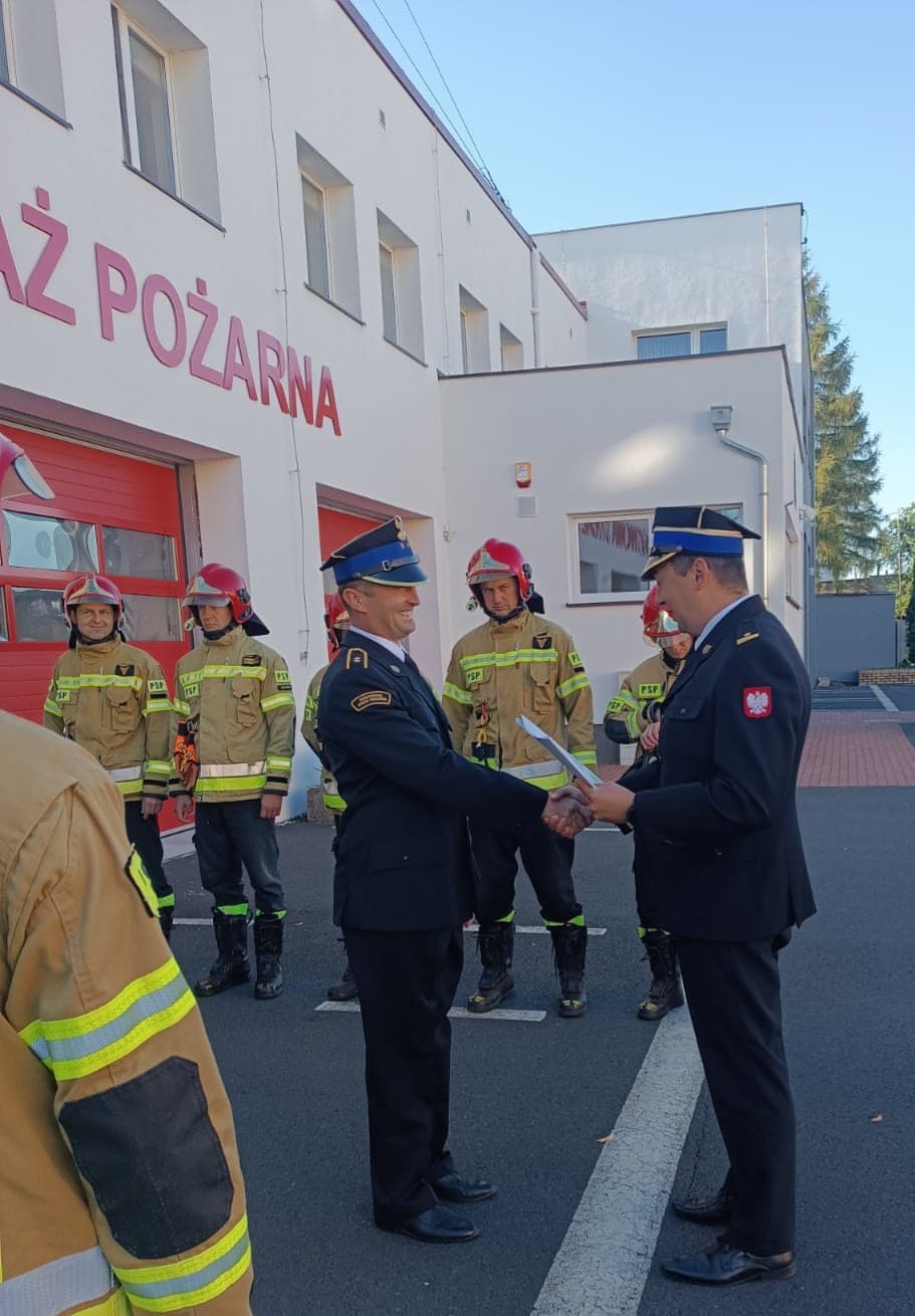 W dniu 1 września 2022 roku punktualnie o godzinie 8:00 na placu zewnętrznym przed budynkiem Komendy Powiatowej Państwowej Straży Pożarnej w Obornikach odbył się uroczysty apel, podczas którego Komendant Powiatowy Państwowej Straży Pożarnej w Obornikach mł. bryg. Michał Mulka wraz z Zastępcą Komendanta Powiatowego Państwowej Straży Pożarnej w Obornikach st. kpt. Przemysławem Olszewskim dokonał wręczenia aktów mianowania na wyższe stanowiska służbowe.