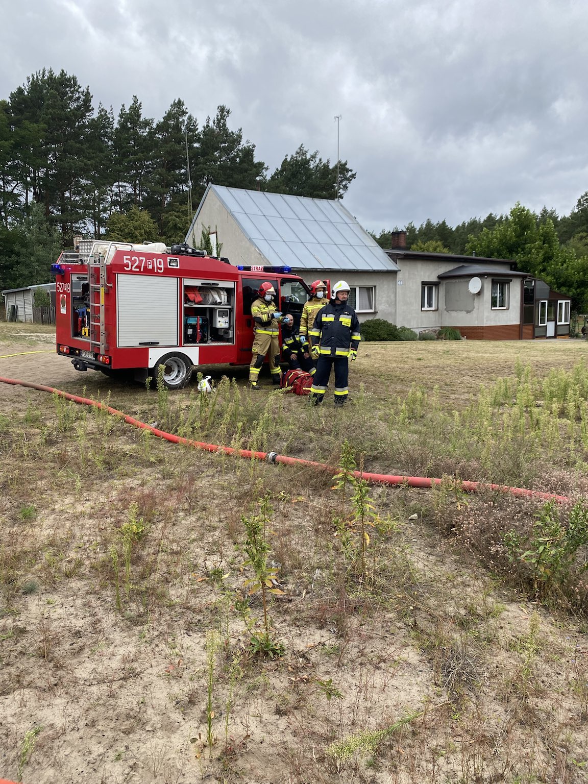 - sprawdzenie umiejętności współpracy pomiędzy funkcjonariuszami PSP oraz druhami OSP podczas podawania prądów gaśniczych.