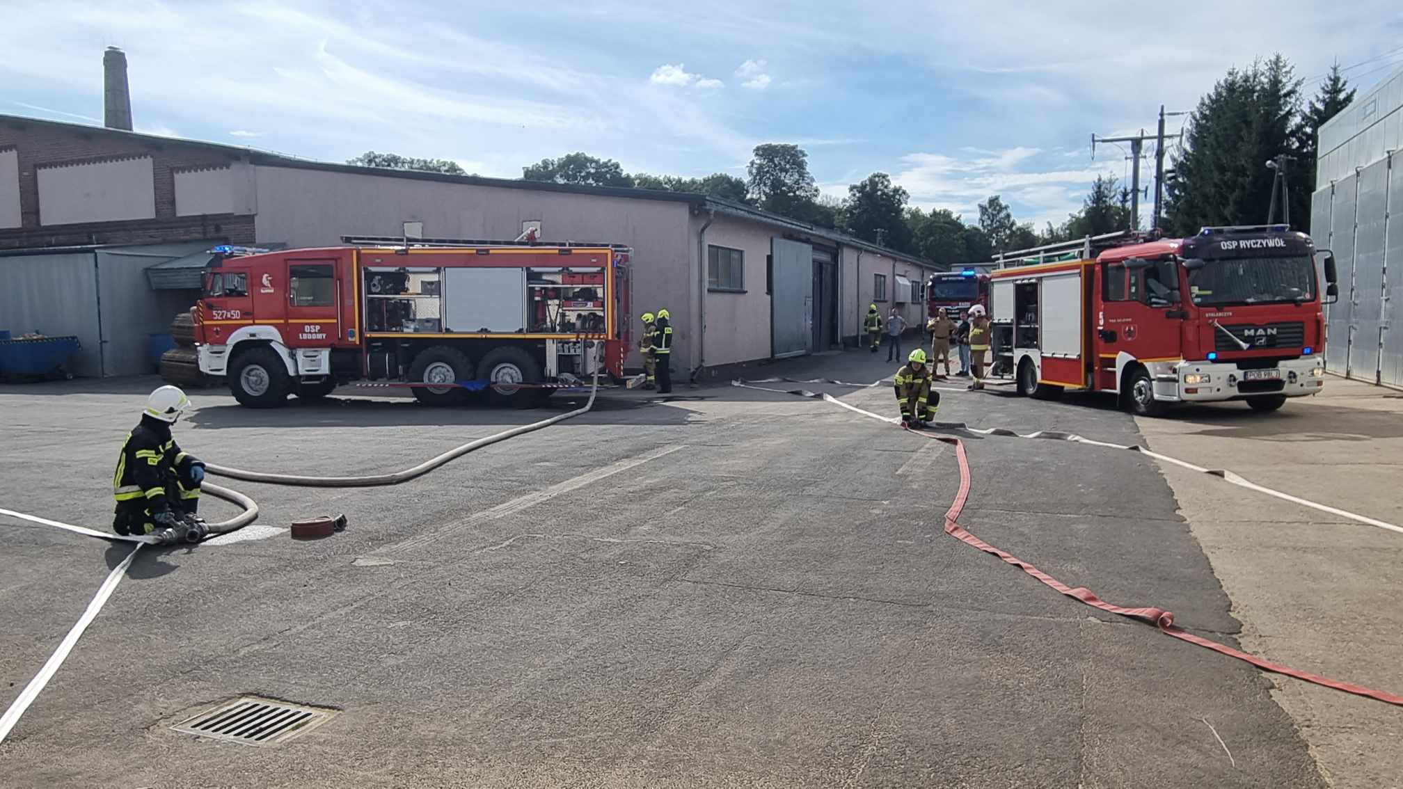 Dnia 5 września 2023 roku strażacy z powiatu obornickiego w ramach doskonalenia zawodowego na terenie zakładu produkcyjno – magazynowego PARKIETY JANOWIAK Sp. zo.o. w Gorzewie przeprowadzili ćwiczenia taktyczno – bojowe połączone z rozpoznaniem operacyjnym oraz próbną ewakuacją pracowników firmy.