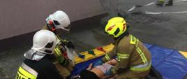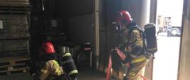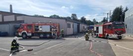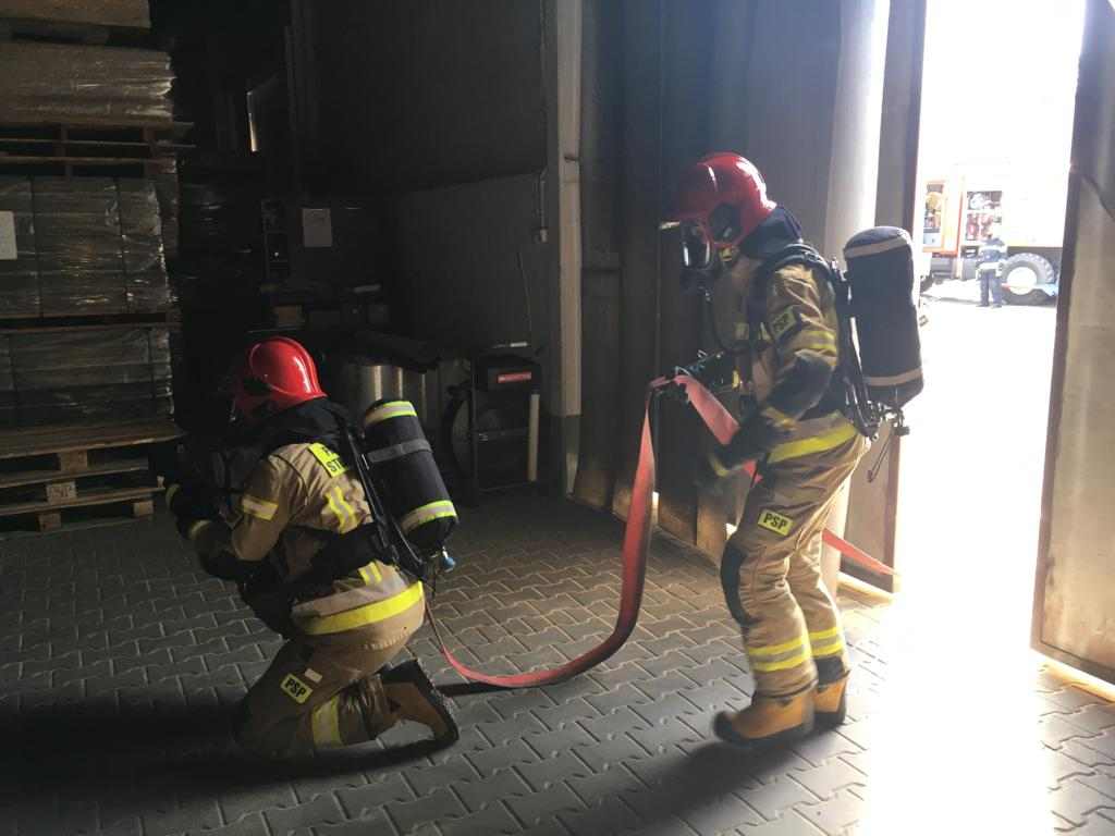 - sprawdzenie współdziałania funkcjonariuszy PSP i druhów OSP podczas podawania środków gaśniczych w natarciu (hala magazynowa produktów gotowych), obronie (pozostałe budynki sąsiadujące);