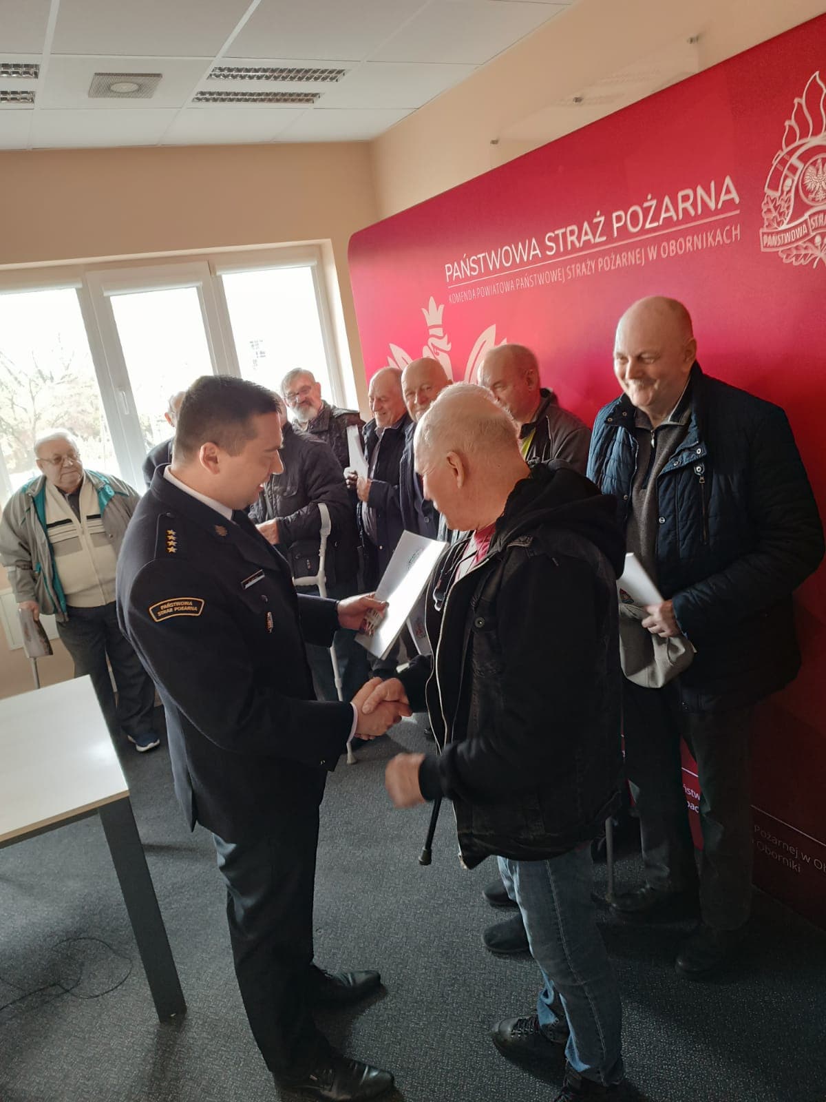 W dniu 21 kwietnia 2022 r. w siedzibie Komendy Powiatowej Państwowej Straży Pożarnej w Obornikach st. kpt. Michał Mulka – Komendant Powiatowy PSP w Obornikach wraz mł. ogn. Pauliną Burdą dokonali uroczystego wręczenia 18 decyzji o przyznaniu świadczenia ratowniczego druhom Ochotniczych Straży Pożarnych z terenu powiatu obornickiego.