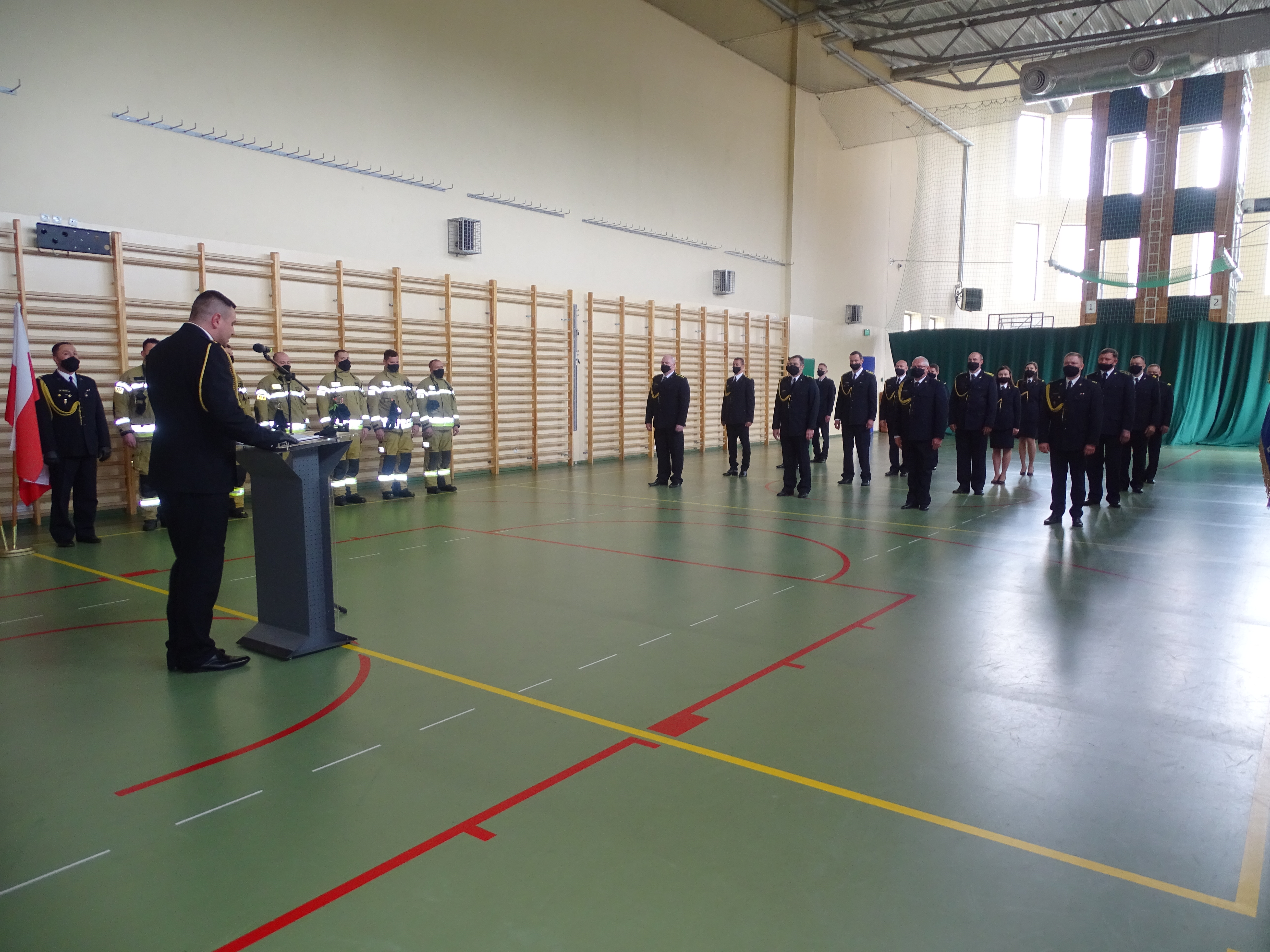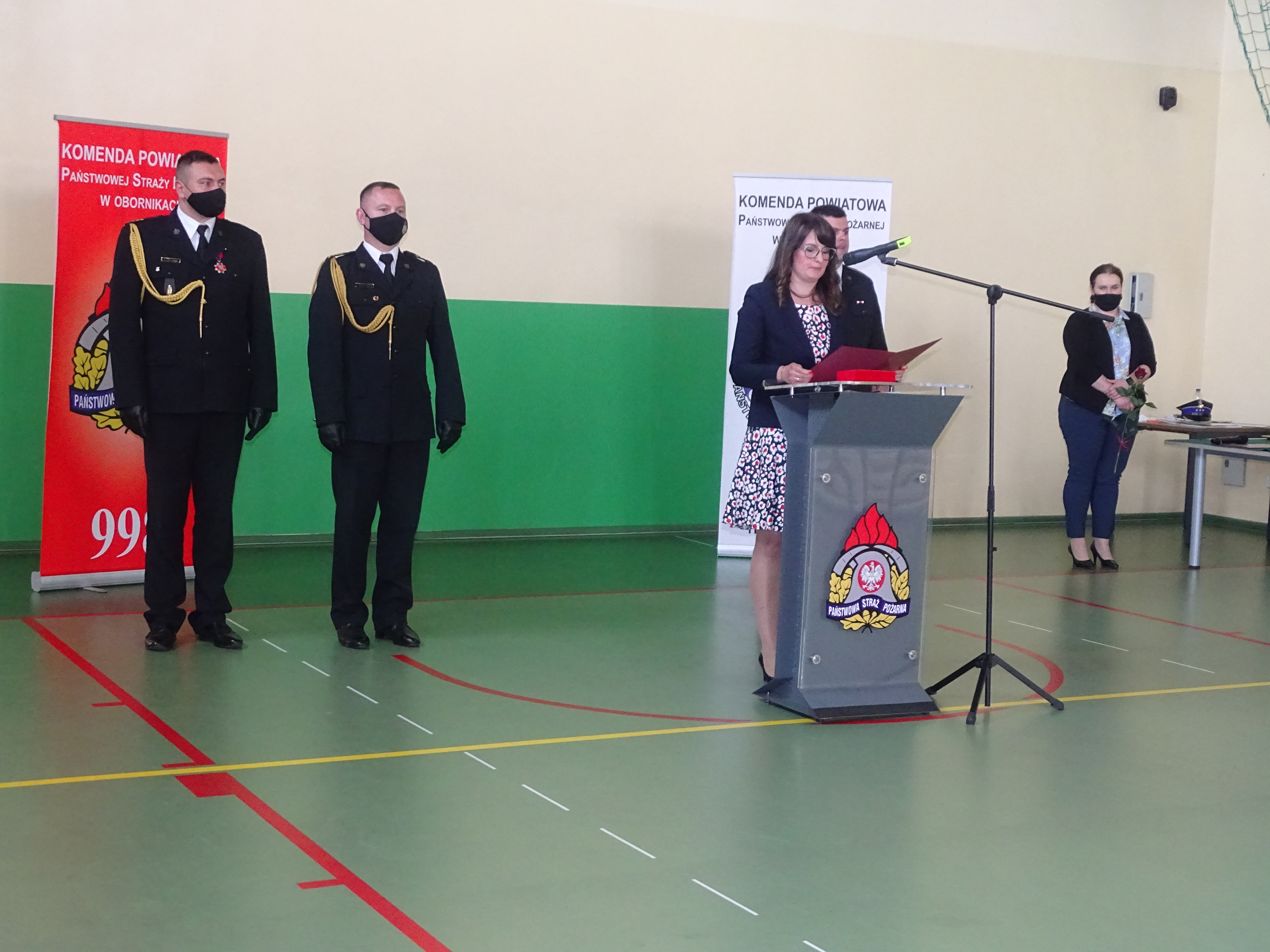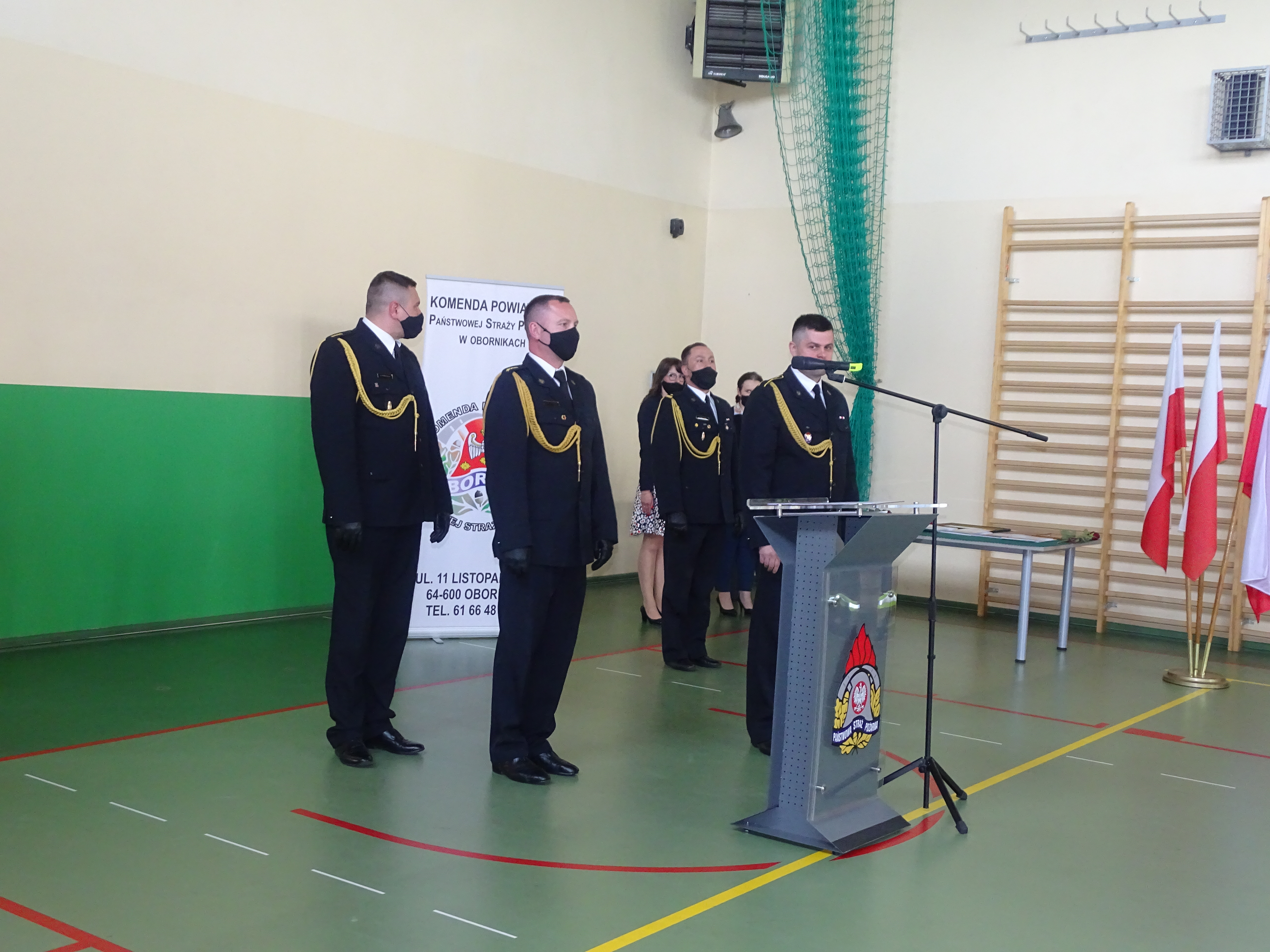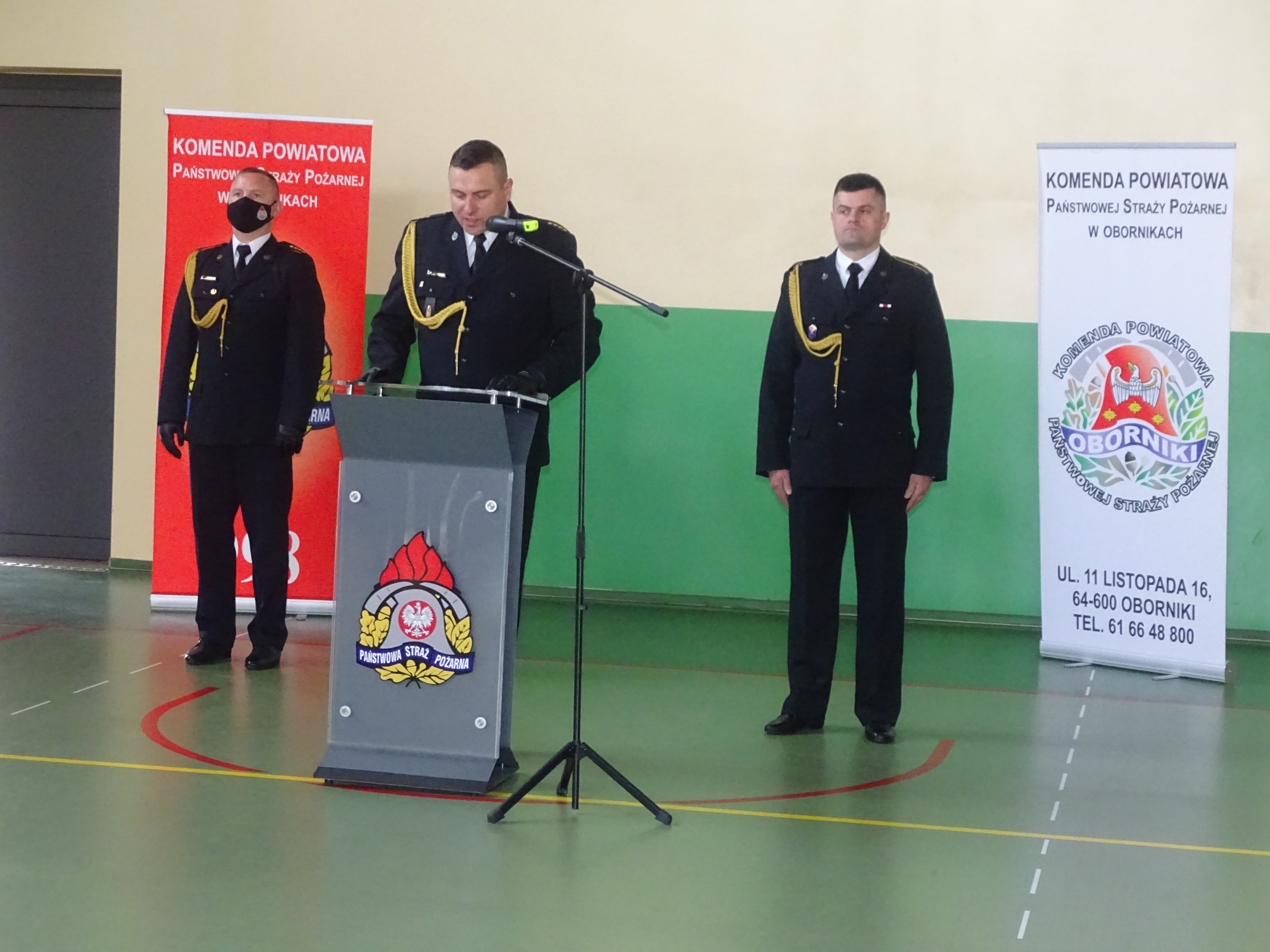 W kolejnej części uroczystości głos zabrał przedstawiciel Wielkopolskiego Komendanta Wojewódzkiego Państwowej Straży Pożarnej st. kpt. Łukasz Ostrowski. Na wstępie pogratulował odznaczonym, awansowanym i wyróżnionym funkcjonariuszom. Podkreślił jak ważną rolę spełniamy w walce z pandemią kierując słowa uznania i podziękowania w imieniu Wielkopolskiego Komendanta Wojewódzkiego nadbryg. Dariusza Matczaka jak również własnym dla strażaków i pracowników obornickiej komendy. W swoim wystąpieniu zaznaczył jak dużo zadań realizujemy na tej płaszczyźnie i jaki to ma wpływ na bezpieczeństwo obywateli.
