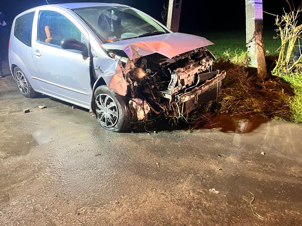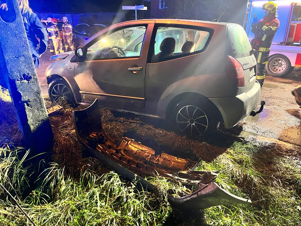 Na miejscu zdarzenia stwierdzono że samochód Citroen C2 uderzył w słup w słup oświetleniowy a w pobliżu nie było uczestników kolizji.